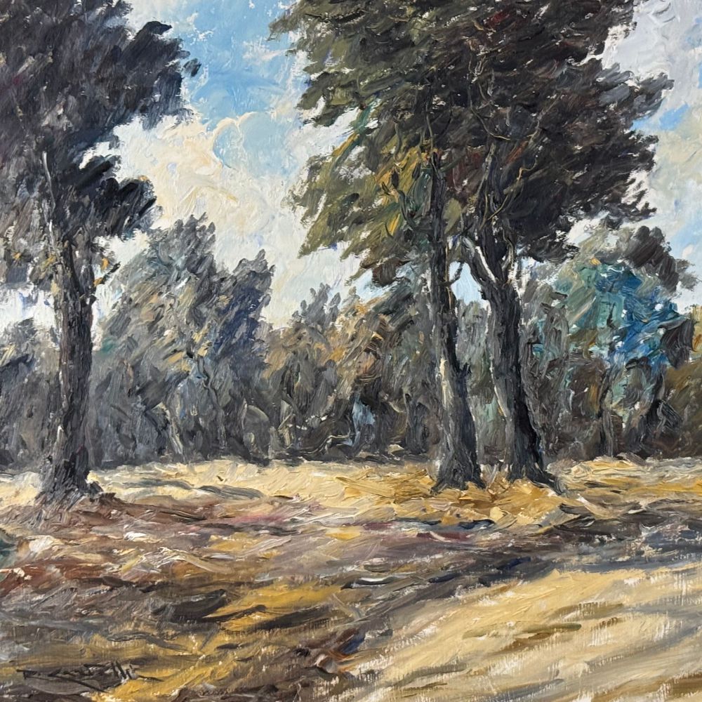 Dipinto olio su pannello, periodo XX secolo scuola italiana, raffigurante Il parco. Dimensioni interno cornice: 50x40 cm. Dimensioni compreso cornice: 62x73,5 cm. Reca firma in basso a sinistra da Carvelli Rocco. Opera in buone condizioni. Cornice con lievi segni di vissuto come da foto allegate.