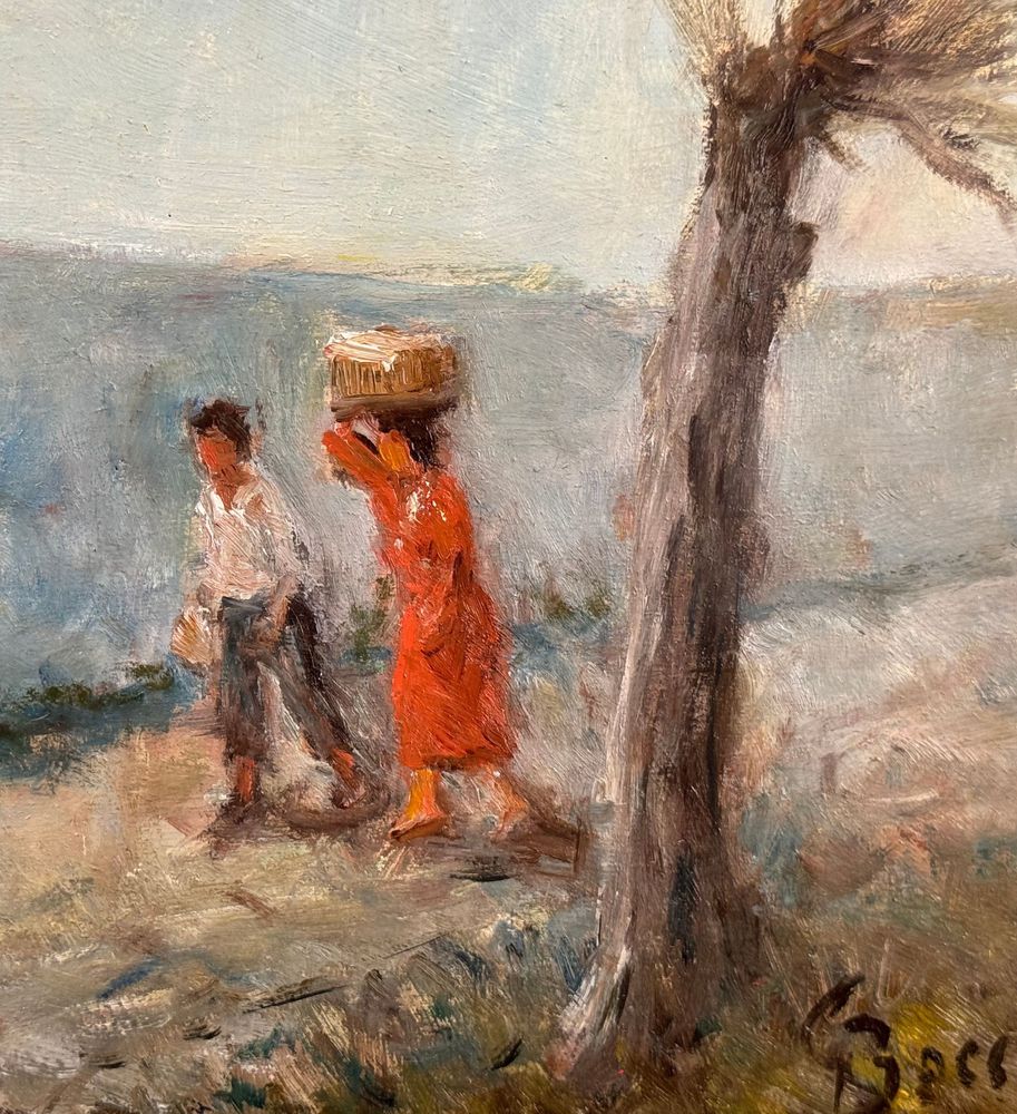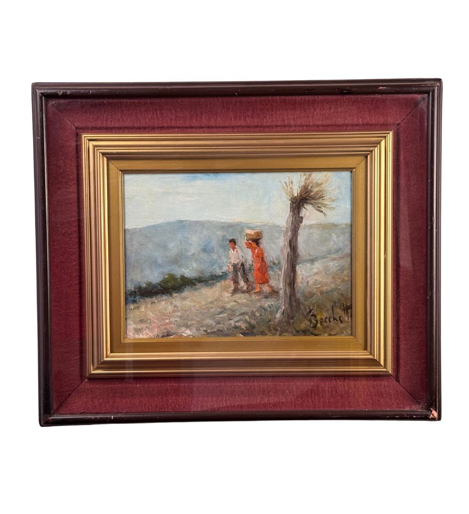 Dipinto olio su tavola, periodo XX secolo, scuola Italiana, raffigurante Contadini . Dimensioni compreso cornice: 60x50 cm. Dimensioni interno cornice: 35x25 cm. Reca frima in basso a destra da Gaetano Bocchetti. Opera in buone condizioni.