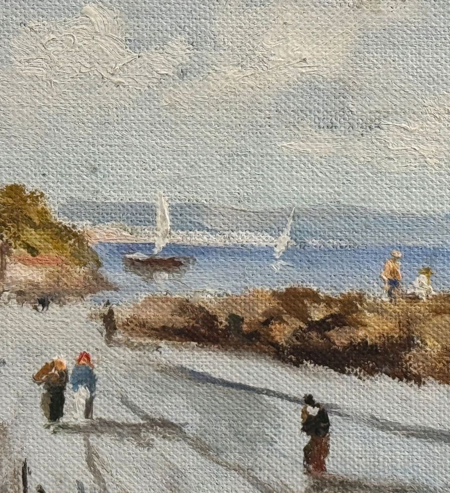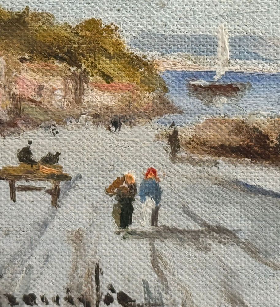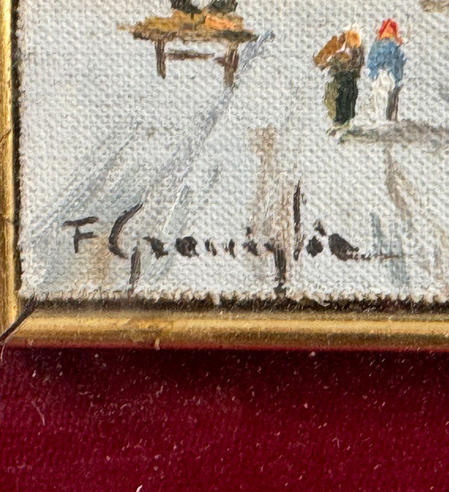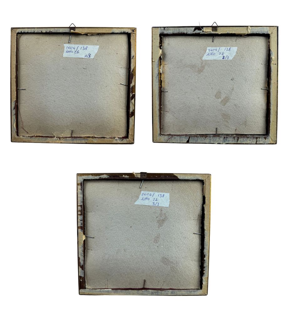 Serie di tre piccoli dipinti olio su tela, periodo XX secolo scuola Italiana, raffiguranti Paesaggi. Dimensioni compreso cornice: 24x22 cm cadauno. Dimensioni interno cornice: 11x8 cm cadauno. Reca firma in basso a sinistra da Francesco Graniglia. Opere in buone condizioni.