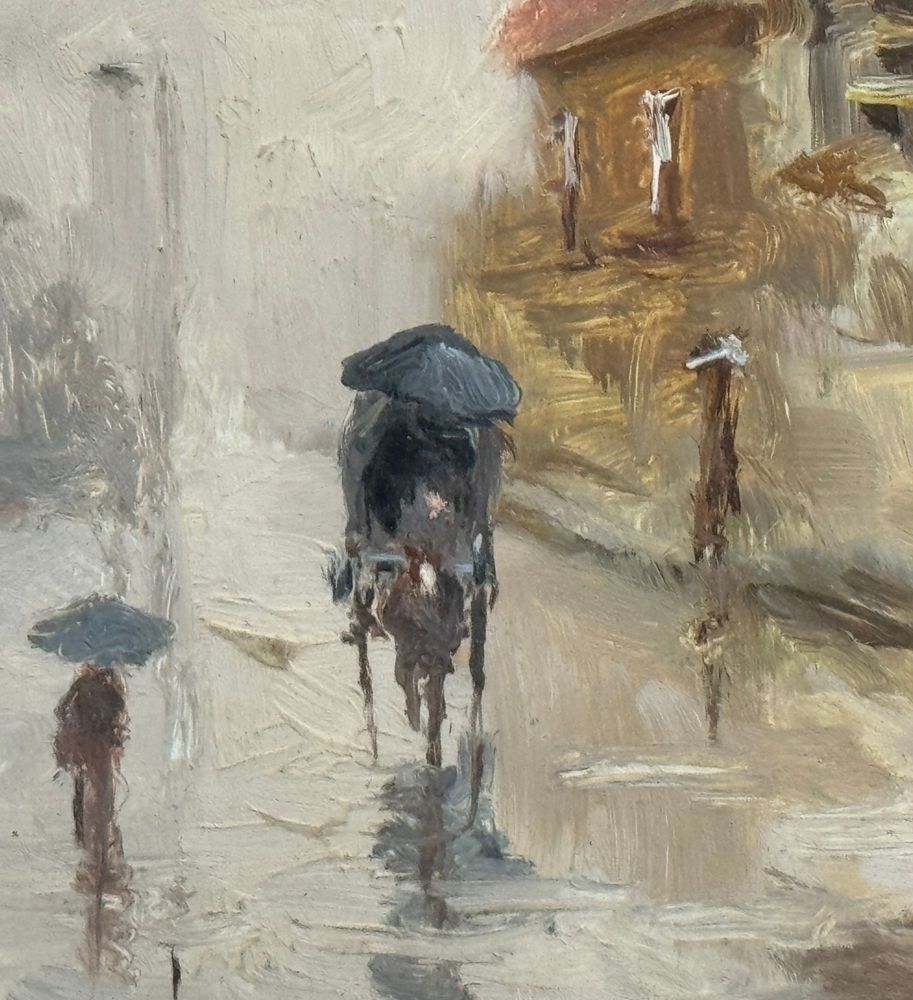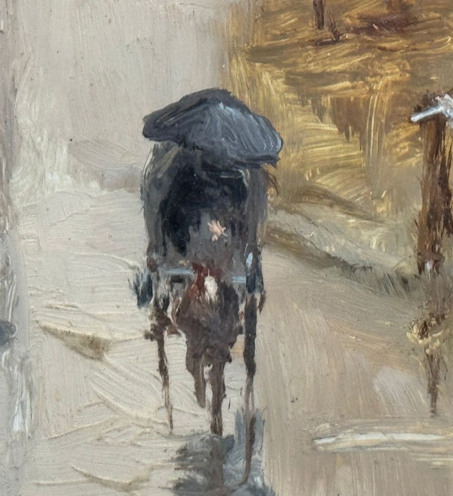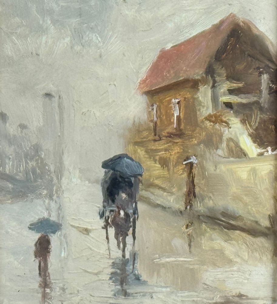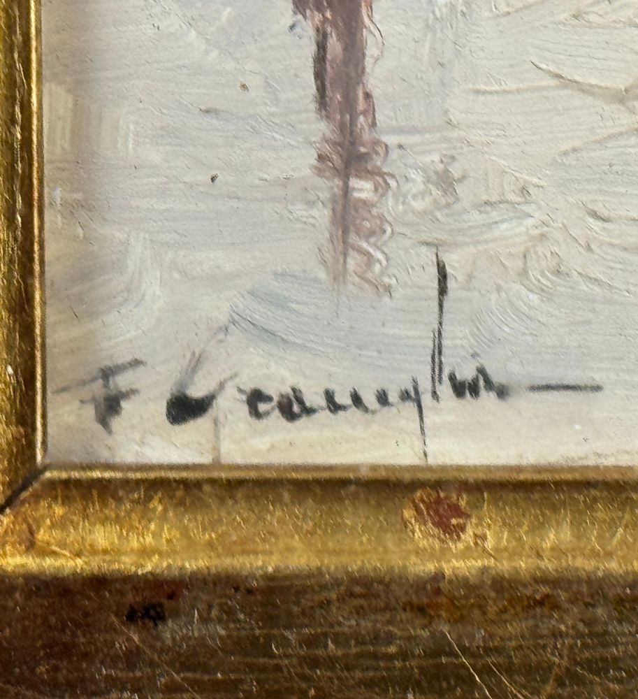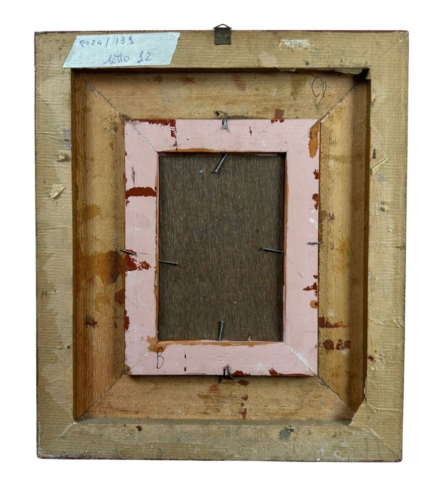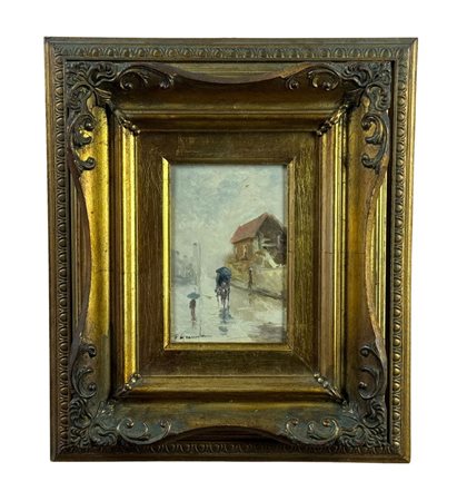 Dipinto olio su tavola, periodo XX secolo scuola italiana, raffigurante Stradina con personaggi e carrozza. Dimensioni compreso cornice: 29x34 cm. Dimensioni interno cornice: 10x15 cm. Reca firma in basso a destra da Francesco Graniglia (1912-2000). Opera in buone condizioni.
