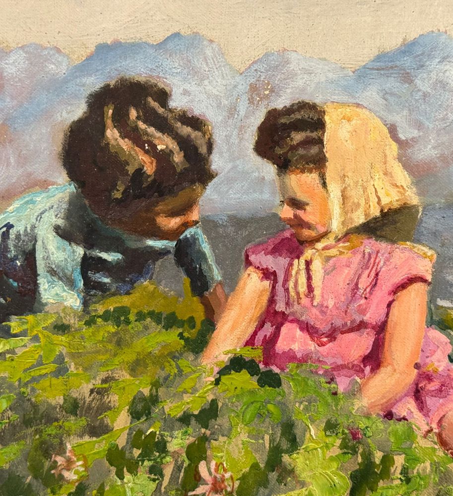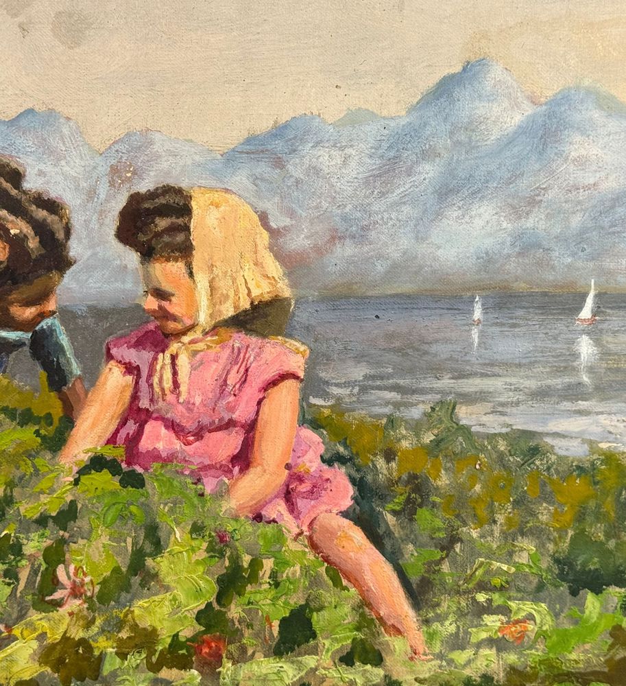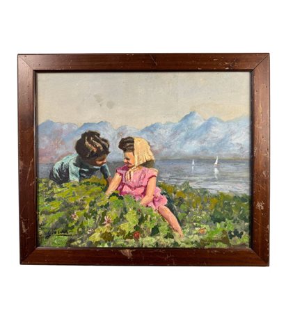 Dipinto olio su pannello, periodo XX secolo scuola Italiana, raffigurante Giochi di bambini. Dimensioni compreso cornice: 53x45 cm. Dimensioni interno cornice: 46x38 cm. Reca firma in basso a sinistra da artista non identificato. Opera in buone condizioni.
