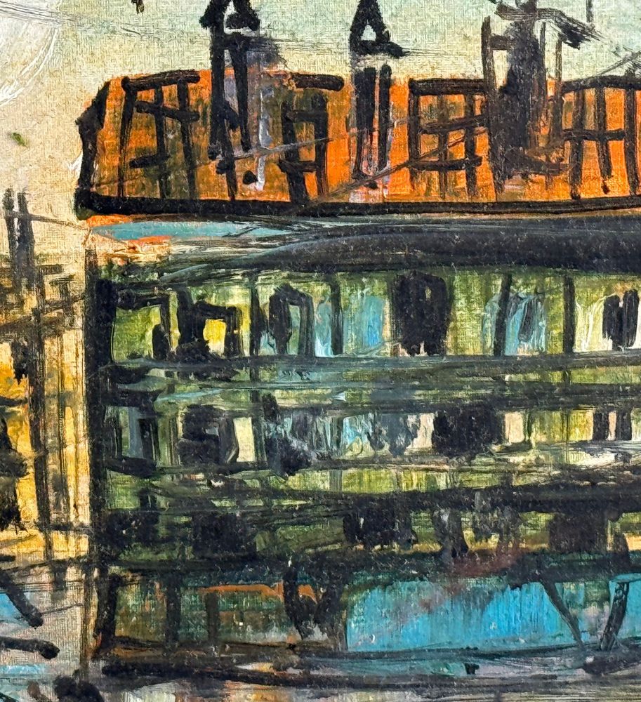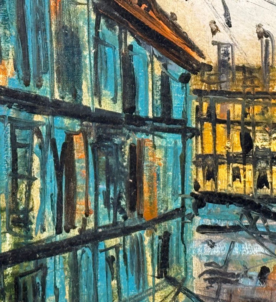 Dipinto olio su tela, periodo XX secolo scuola Italiana, raffigurante Strada con personaggi. Dimensioni compreso cornice: 53x64 cm. Dimensioni interno cornice: 40x50 cm. Reca firma in alto a destra da artista non identificato. Opera in ottime condizioni e di eccellente qualità artistica.