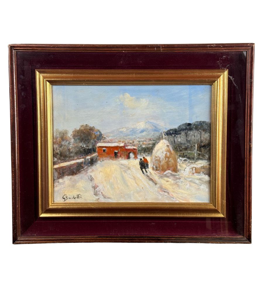 Dipinto olio su tavola, periodo XX secolo scuola italiana, raffigurante Paesaggio. Dimensioni compreso cornice: 59x49 cm. Dimensioni interno cornice: 30x40 cm. Reca firma in basso a sinistra da Gaetano Bocchetti (1888 - 1990). Opera in buone condizioni.