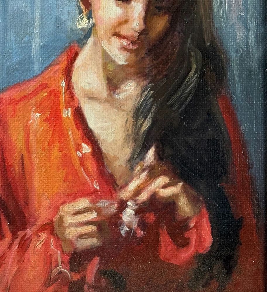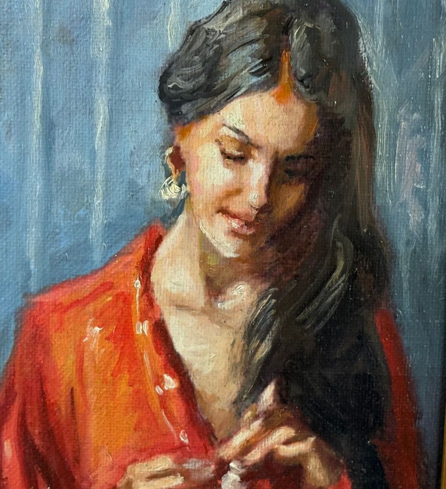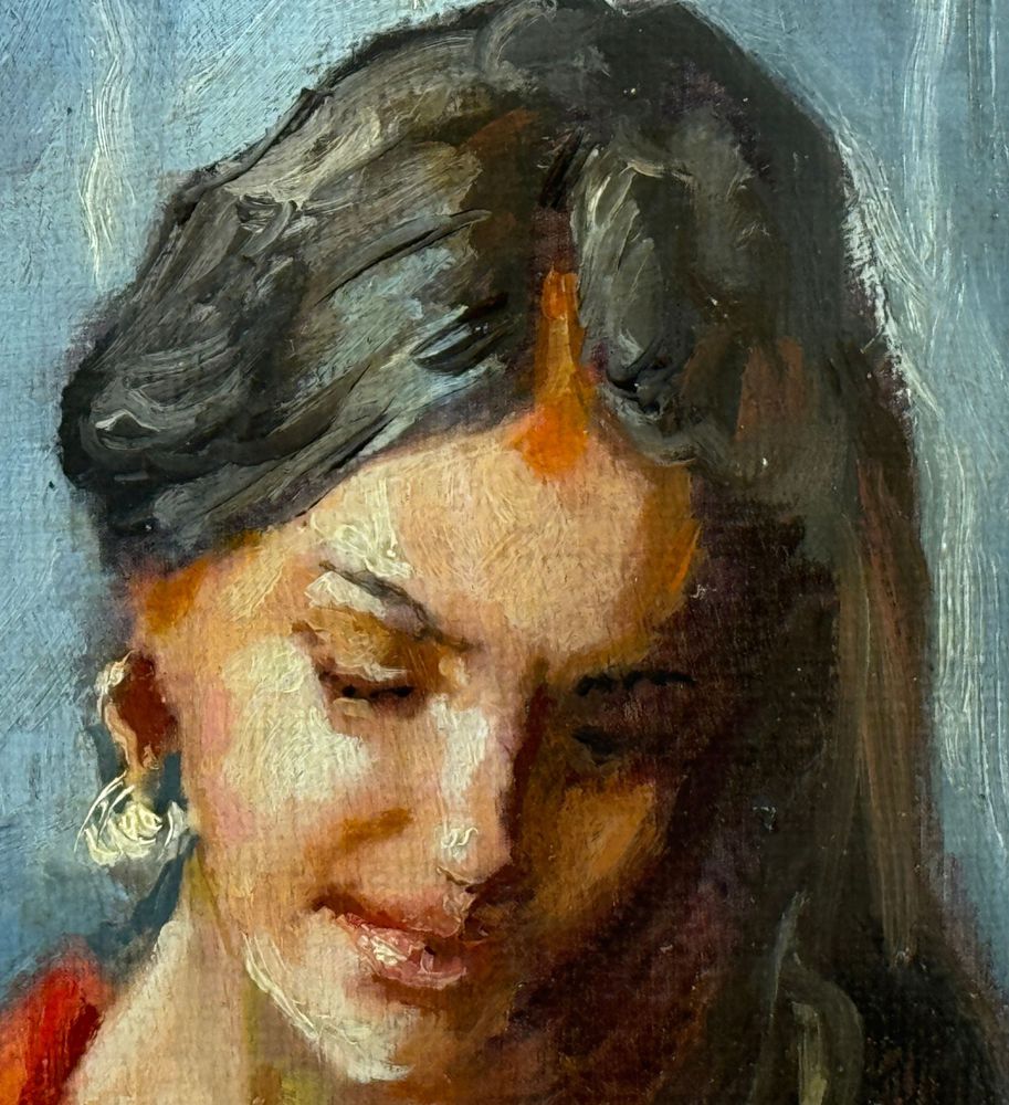 Dipinto olio su tela applicata su pannello, periodo XX secolo scuola italiana, raffigurante Ritratto di donna. Dimensioni compreso cornice: 36x46 cm. Dimensioni interno cornice: 26,5x37 cm. Da artista anonimo. Opera in buone condizioni.