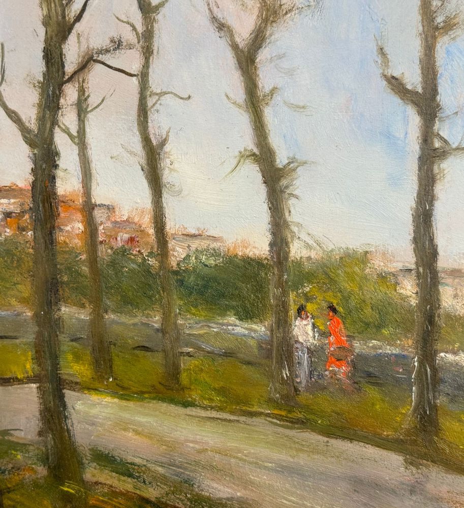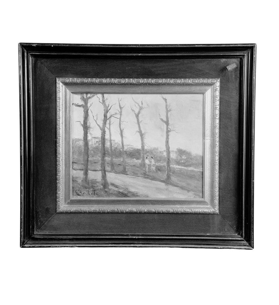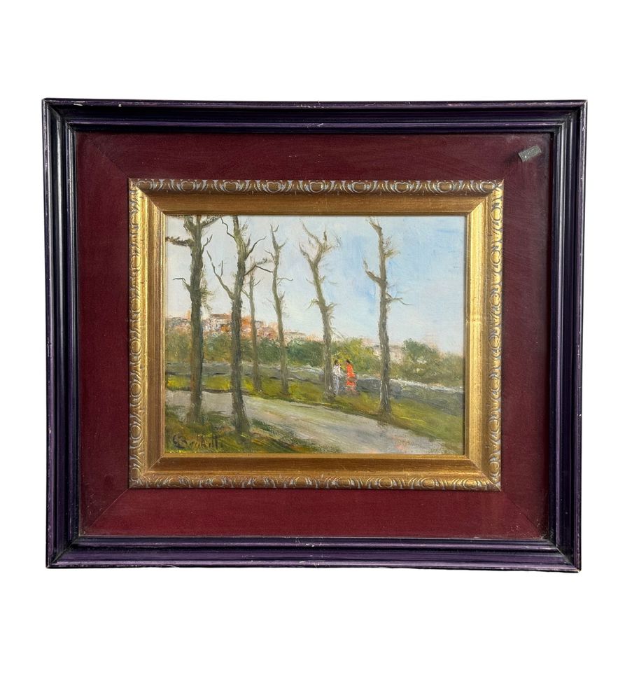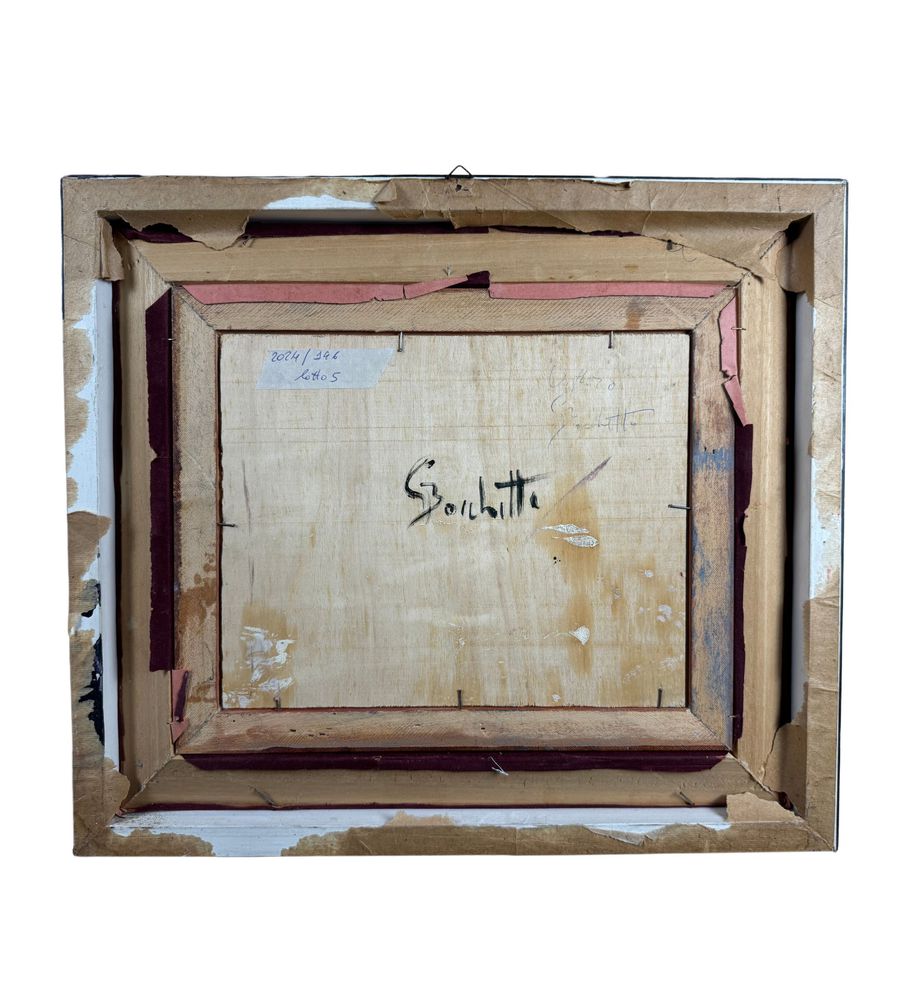Dipinto olio su tavola, periodo XX secolo scuola Italiana, raffigurante Paesaggio con personaggi. Dimensioni compreso cornice: 50x45 cm. Dimensioni interno cornice: 30x24 cm. Reca firma in basso a sinistra e autentica sul retro da Gaetano Bocchetti (1888 - 1990). Opera in buone condizioni.