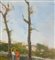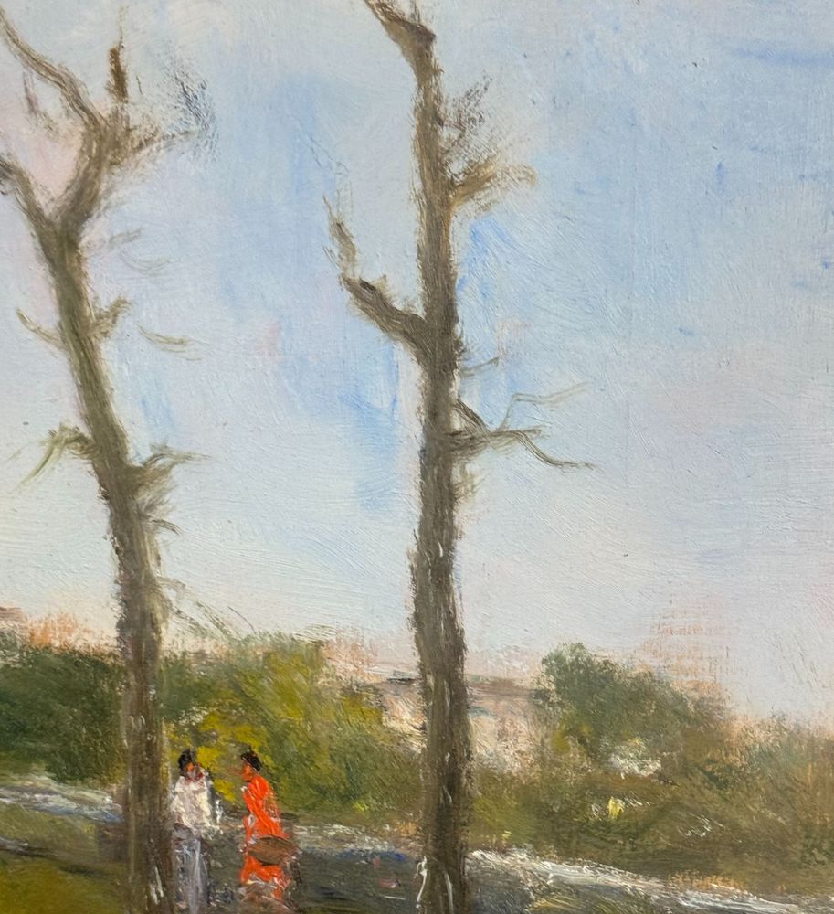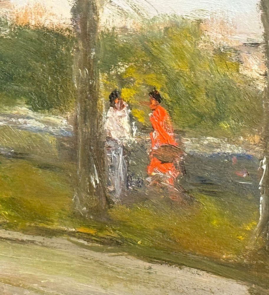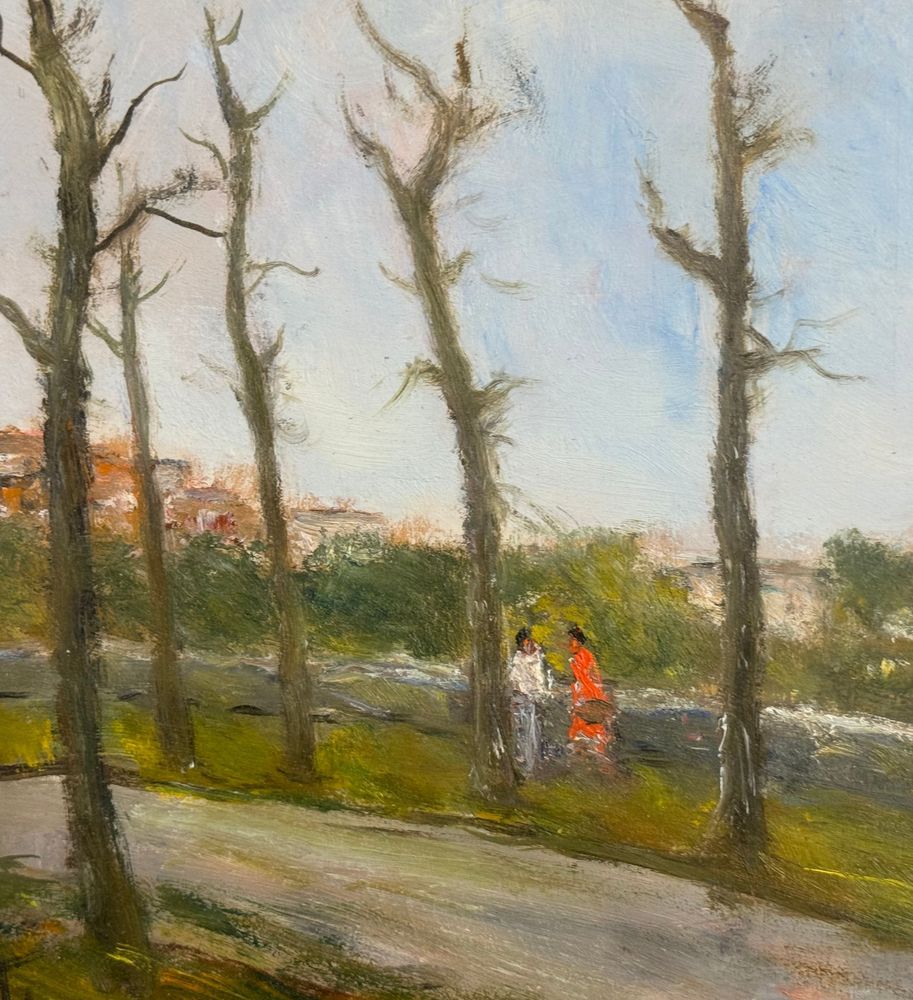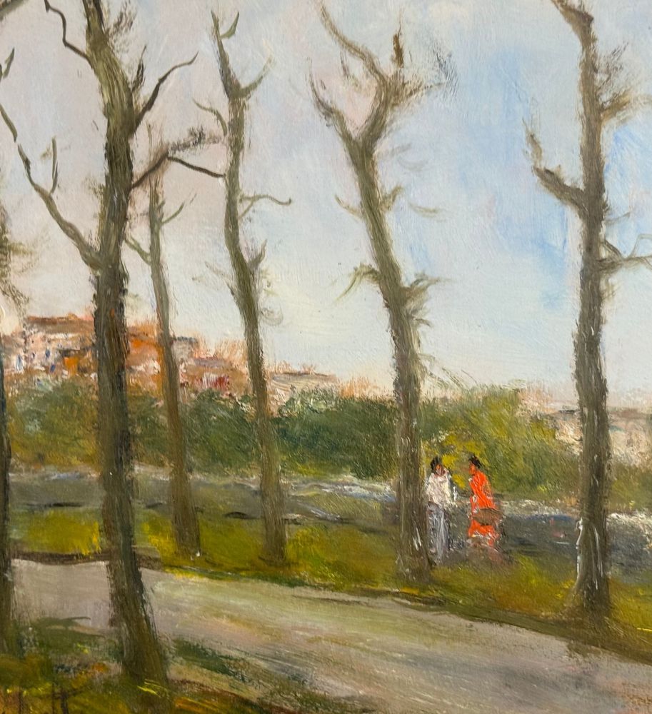 Dipinto olio su tavola, periodo XX secolo scuola Italiana, raffigurante Paesaggio con personaggi. Dimensioni compreso cornice: 50x45 cm. Dimensioni interno cornice: 30x24 cm. Reca firma in basso a sinistra e autentica sul retro da Gaetano Bocchetti (1888 - 1990). Opera in buone condizioni.