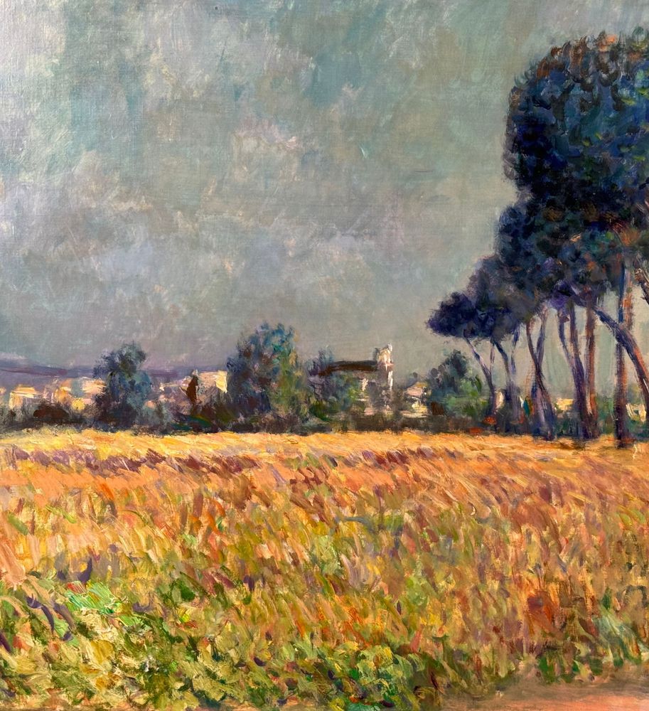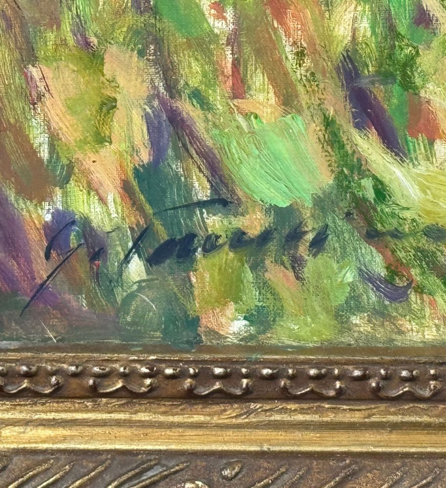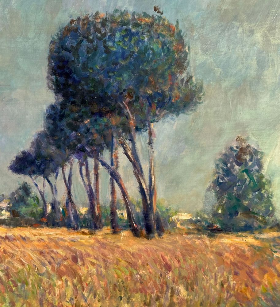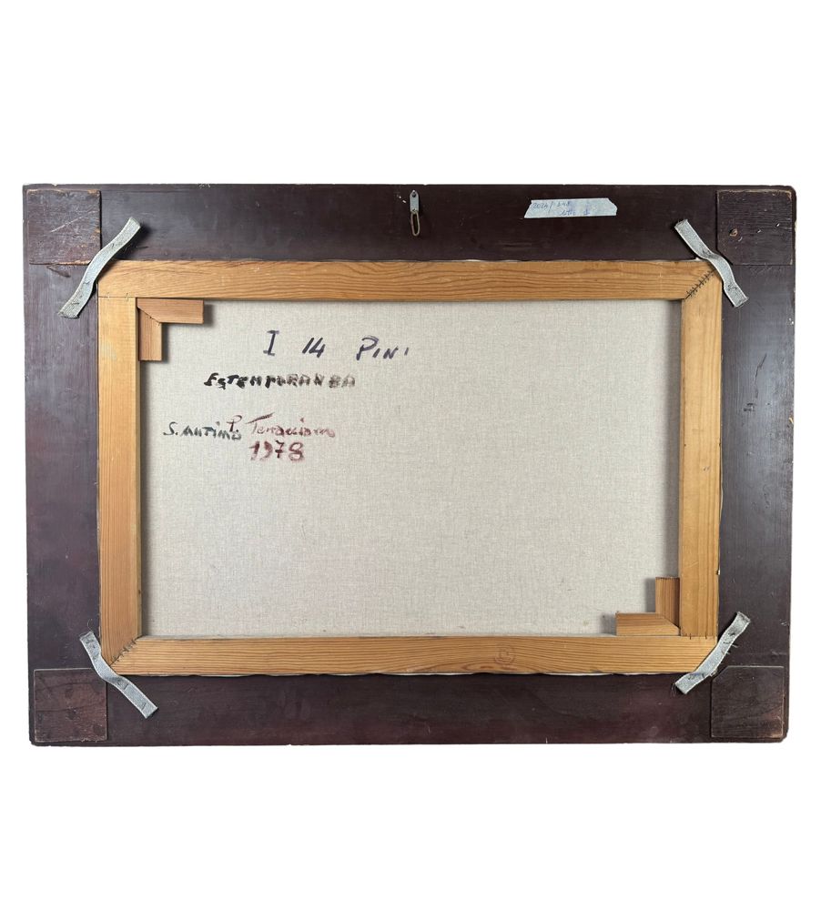 Dipinto olio su tela, periodo XX secolo (1978) scuola Italiana, raffigurante Paesaggio con pini. Dimensioni compreso cornice: 113x83 cm. Dimensioni interno cornice: 90x60 cm. Reca firma in basso a sinistra da Terracciano Giuseppe. Opera in ottime condizioni e di eccellente qualità artistica.