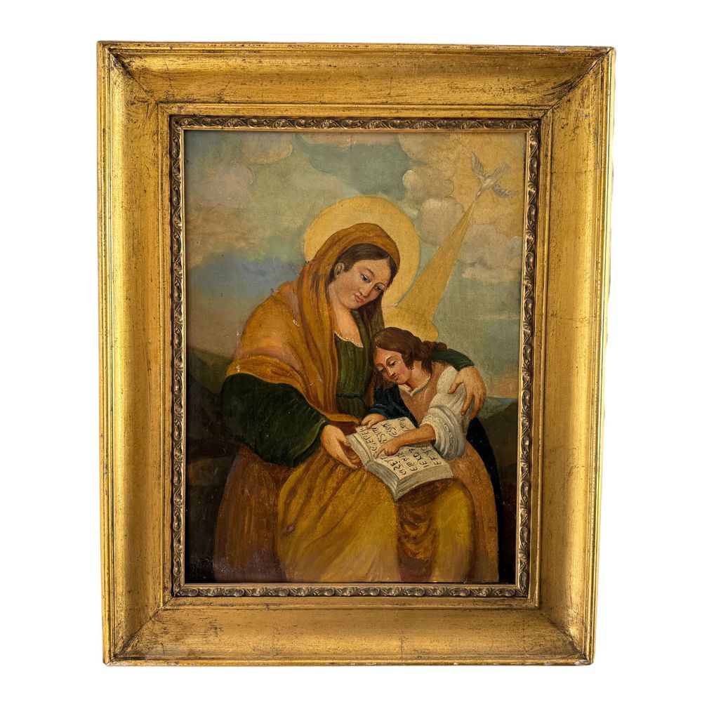 Dipinto olio su tela, periodo XIX secolo scuola Italiana, raffigurante La lettura di Maria.
