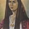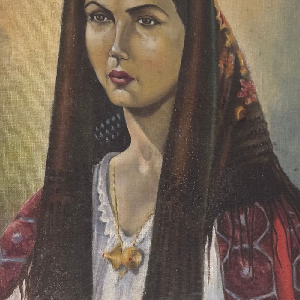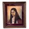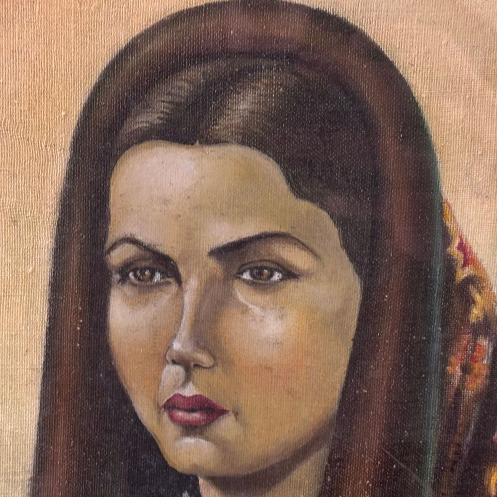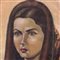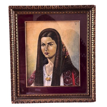 Dipinto olio su tela applicata su cartoncino, periodo XX secolo, raffigurante Ritratto di donna con velo.