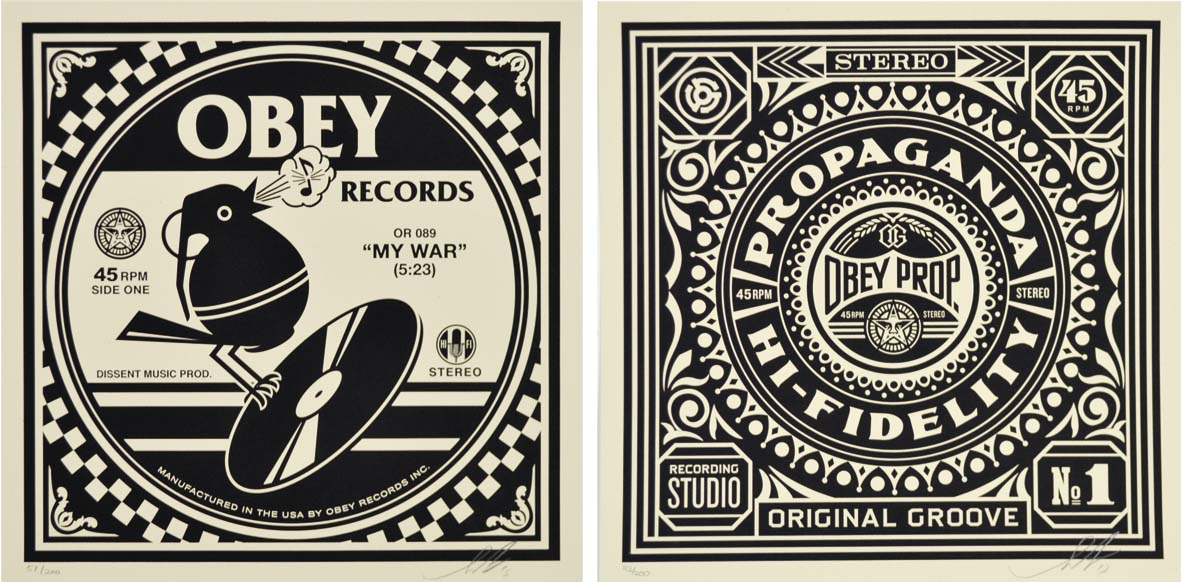 SHEPARD FAIREY FRANK Charleston (South Carolina) 1970 Obey records 2013 lotto di 2 serigrafie es. 113/200 e 57/200 30,5x30,5 cad. firma data e tiratura in basso