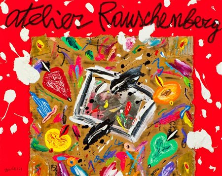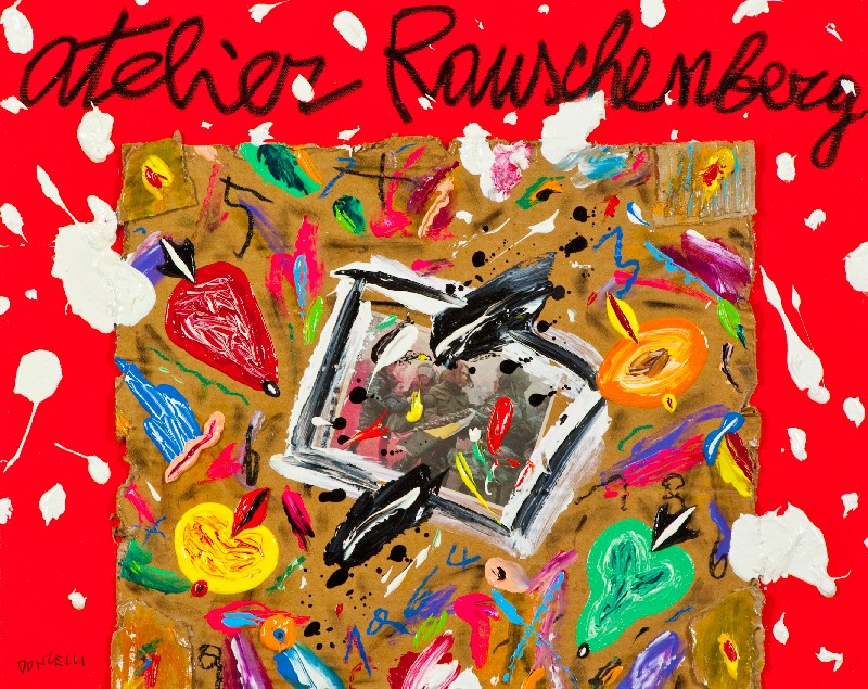 Bruno Donzelli (Napoli 1941) ATELIER RAUSCHEMBERG Tecnica mista su tela, cm. 40x50 Firmato in basso a sinistra. Sul verso: firma e titolo.