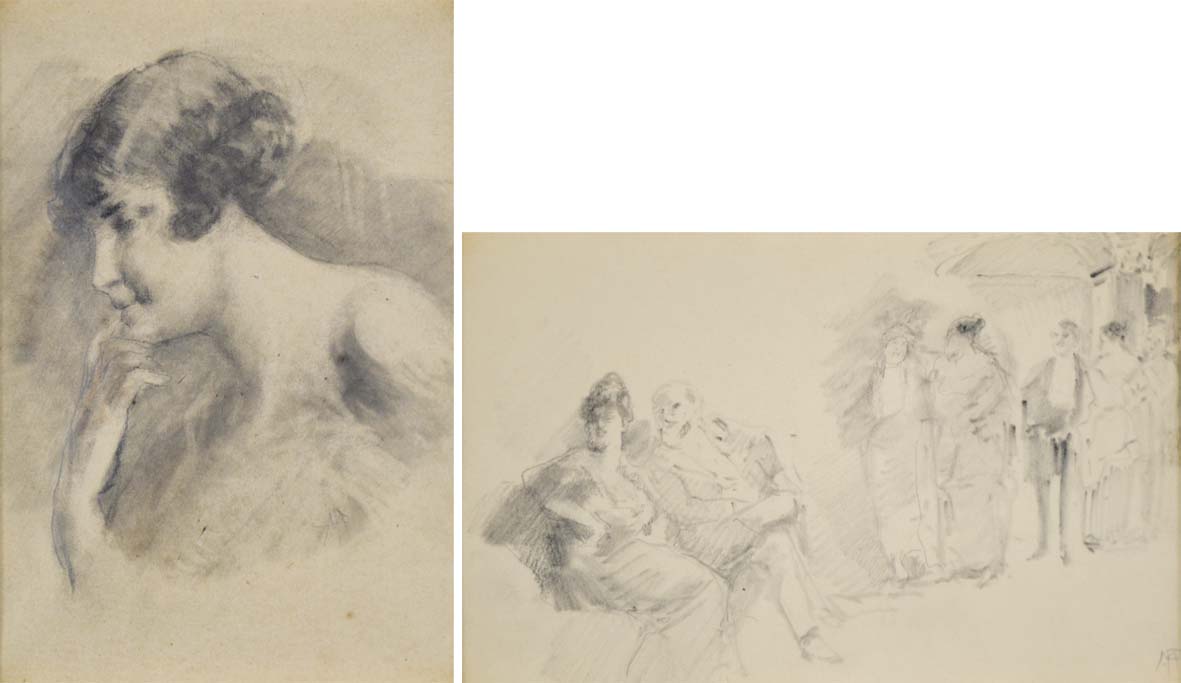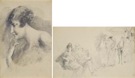MARIANI POMPEO Monza 1857 - Bordighera 1927 Figure lotto di 2 disegni a...