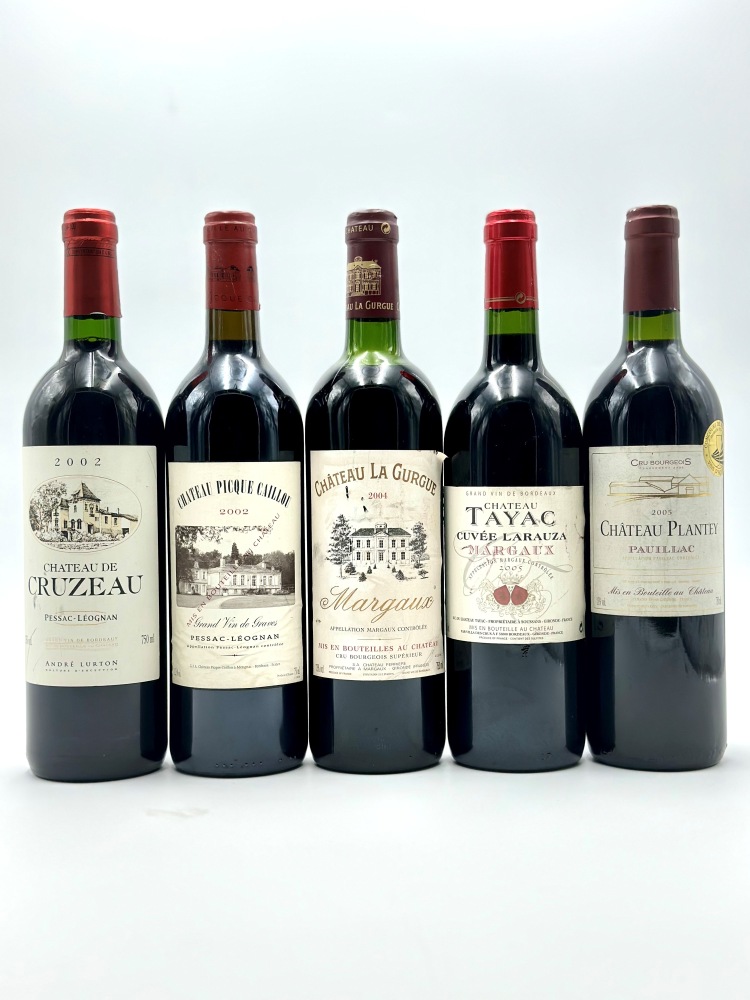 Francia- 0,75 Selezione Francia - 5 bottiglie (bt), annate 2002, 2004, 2005.