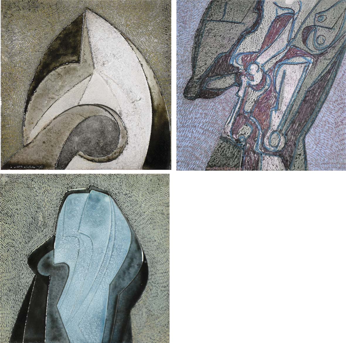 MOCENNI GUALTIERO Pola (Istria) 1935 senza titolo 1975 lotto di 3 tecniche miste su tavola 20x20 cad. tutte firmate e datate al retro