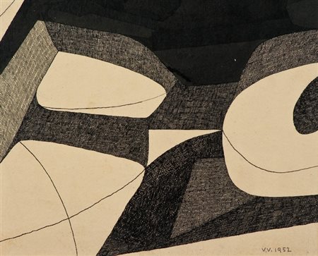 Venturino Venturi (Loro Ciuffenna (Ar) 1918 - 2002) SENZA TITOLO, 1952 China su carta, cm. 26x32 Sigla e data in basso a destra. Sul verso: timbro "Archivio Venturino Venturi con numero 335". Autentica della Dott.ssa Lucia Fiaschi, su foto.