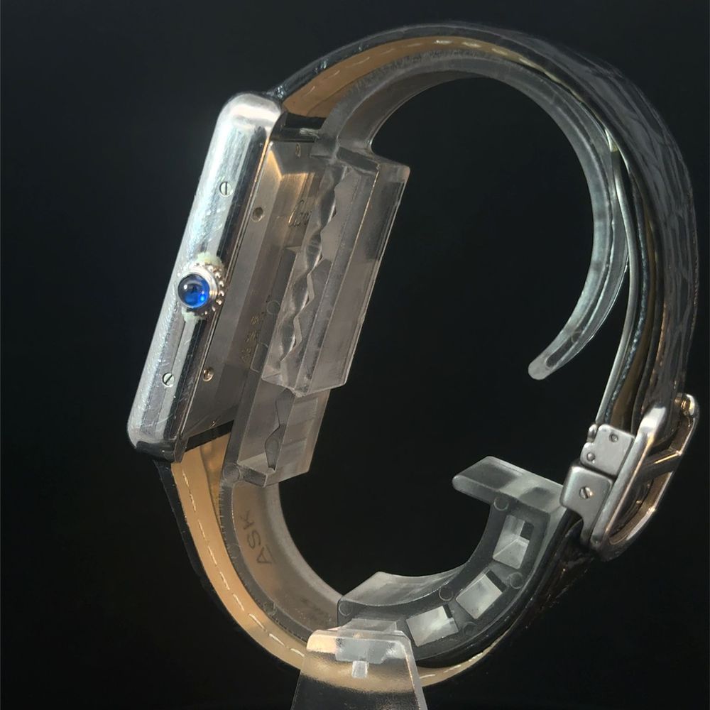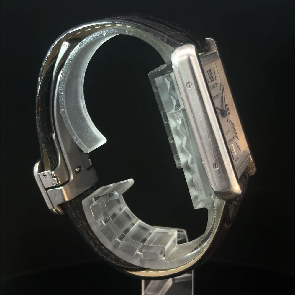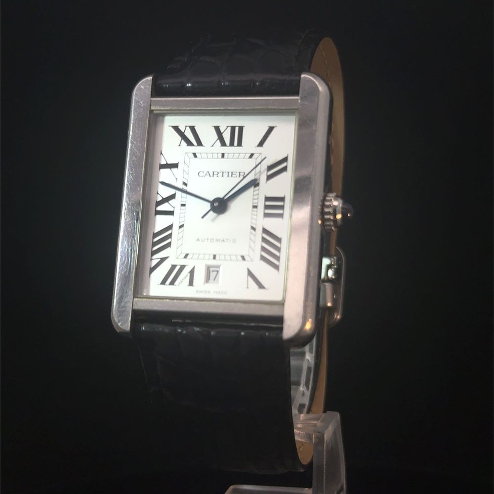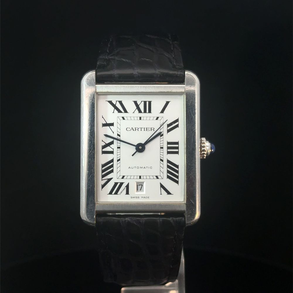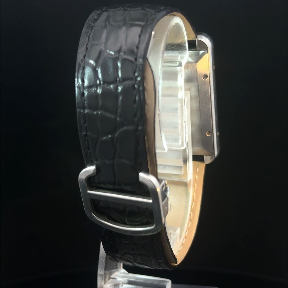 Marca Cartier Modello (Orologio) Tank Solo Numero di referenza 3515 Carica Automatico Materiale della cassa Acciaio Condizione Usato (Ottimo) L'articolo presenta segni di usura lievi, come ad esempio graffi leggeri, ma non percepibili al tatto. Revisione interna Corredo Senza scatola originale né documenti originali Calibro Carica Automatico Riserva di carica 42 h Cassa Materiale della cassa Acciaio Diametro 31 x 40.85 mm Impermeabile 3 ATM Materiale lunetta AcciaioVetro zaffiro Quadrante Argento Numeri sul quadrante Romani Colore cinturino Nero, non originale Cartier Chiusura Déployante originale Materiale chiusura Acciaio Funzioni Data