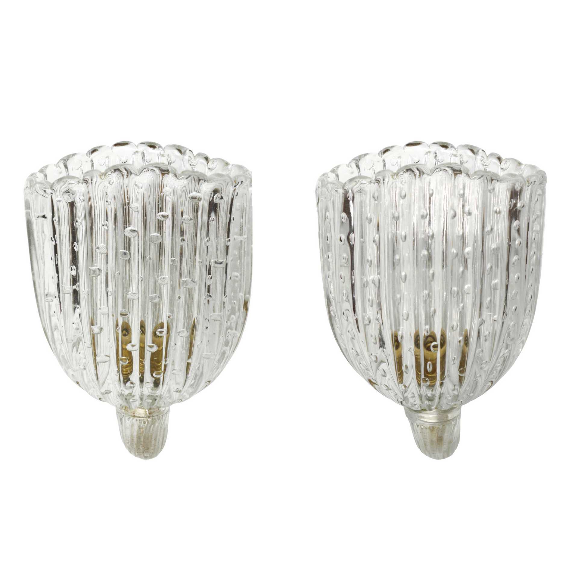 Barovier e Toso - Coppia di lampade da muro in vetro di Murano pulegoso