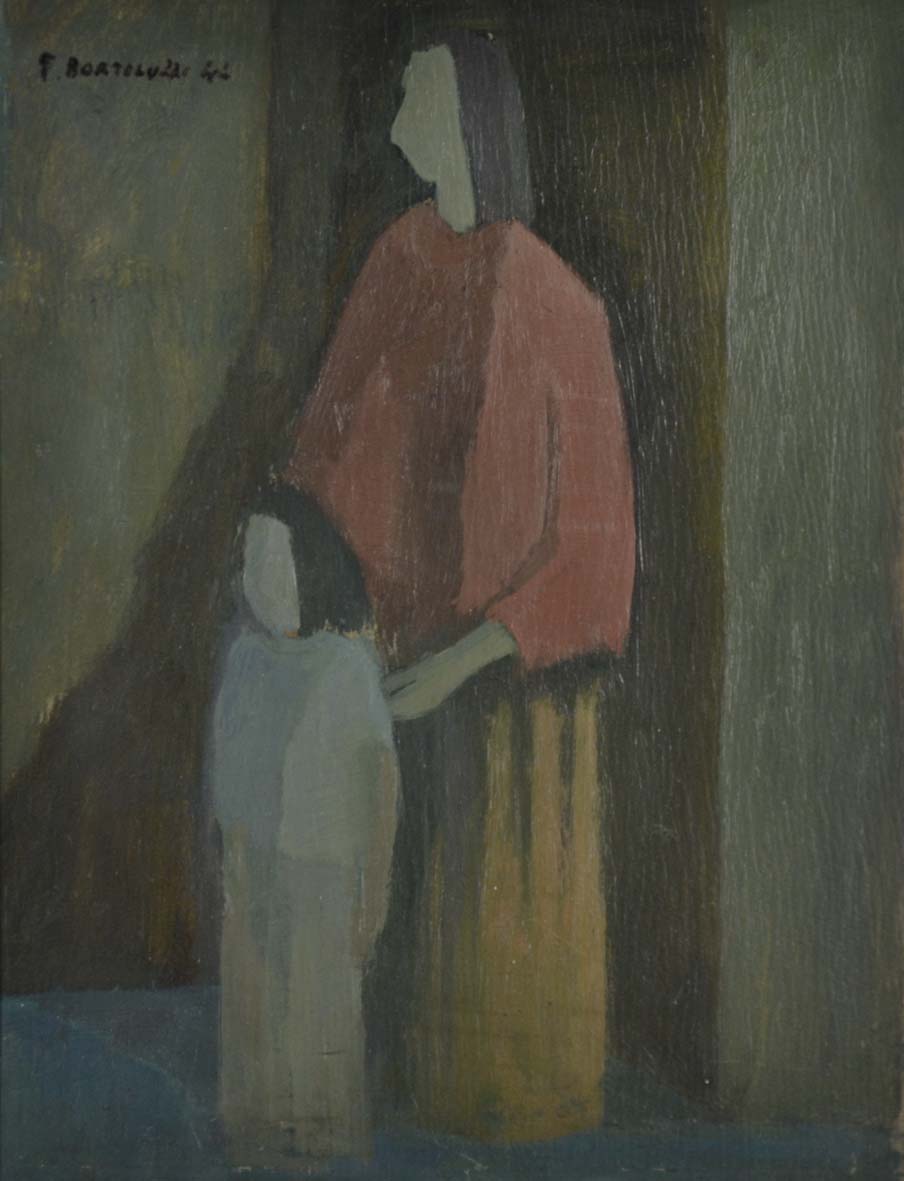 BORTOLUZZI FERRUCCIO Venezia 1920 - 2007 Figure 1944 olio su cartone 45x35 firma e data in alto a sinistra Bibliografia: "Ferruccio Bortoluzzi" catalogo generale a cura di Michele Beraldo ed. Electa pag. 134 tav. 10
