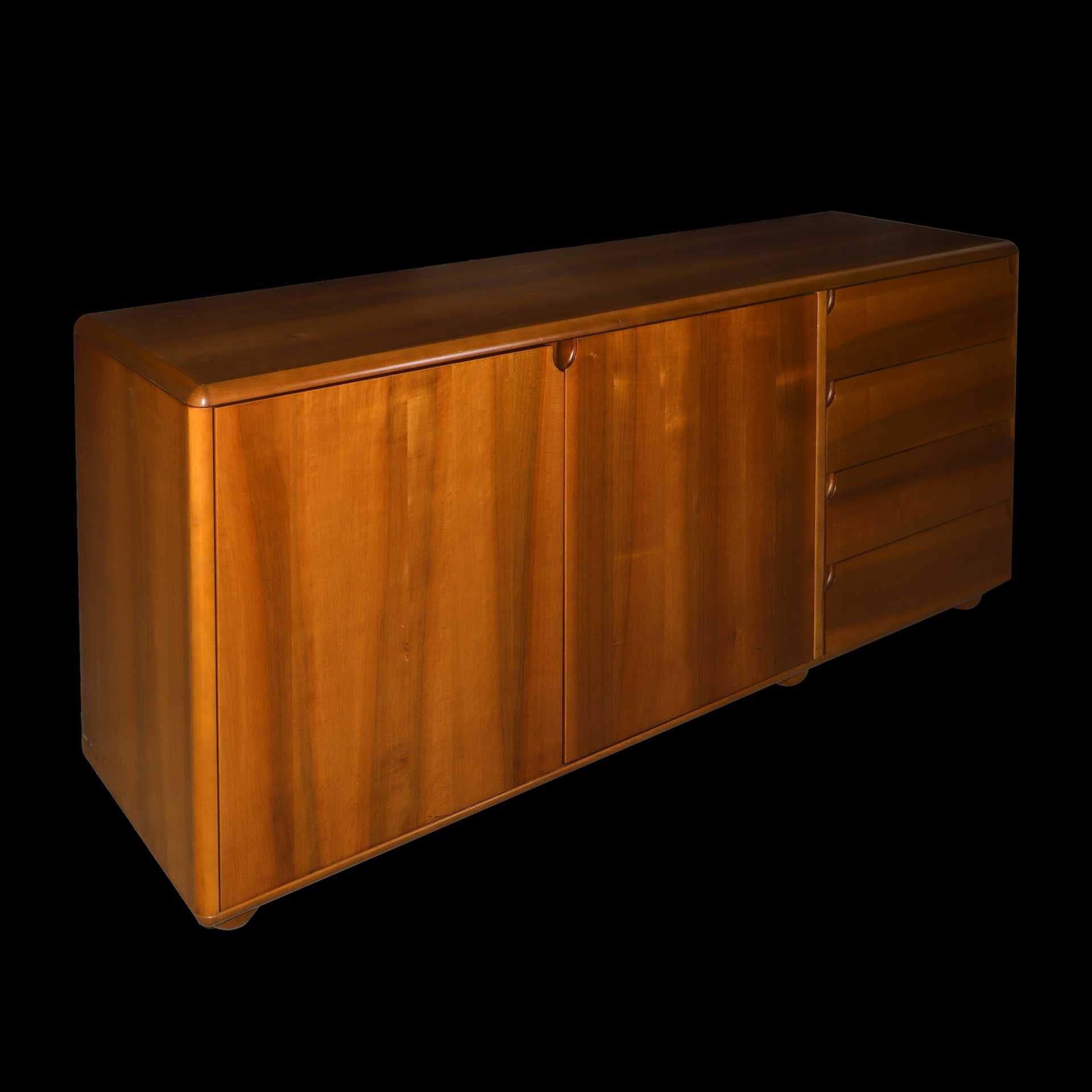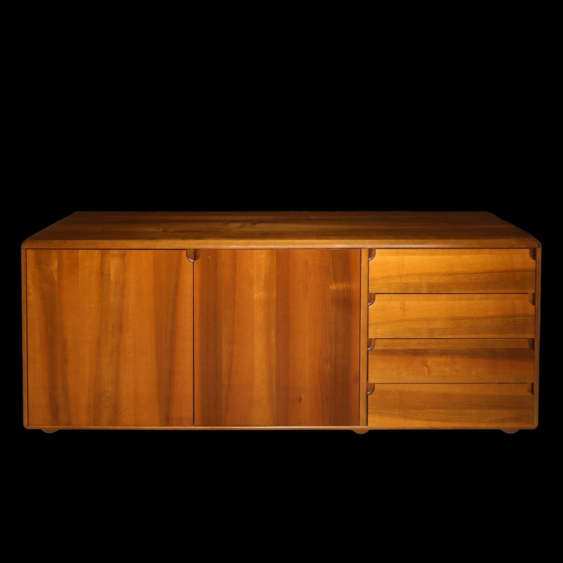 Lot 170 | Mobile contenitore basso, 4 cassetti laterali e 2 ante in legno massello