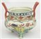 In porcellana policroma decorata a motivi vegetali ed animali. Difetti.