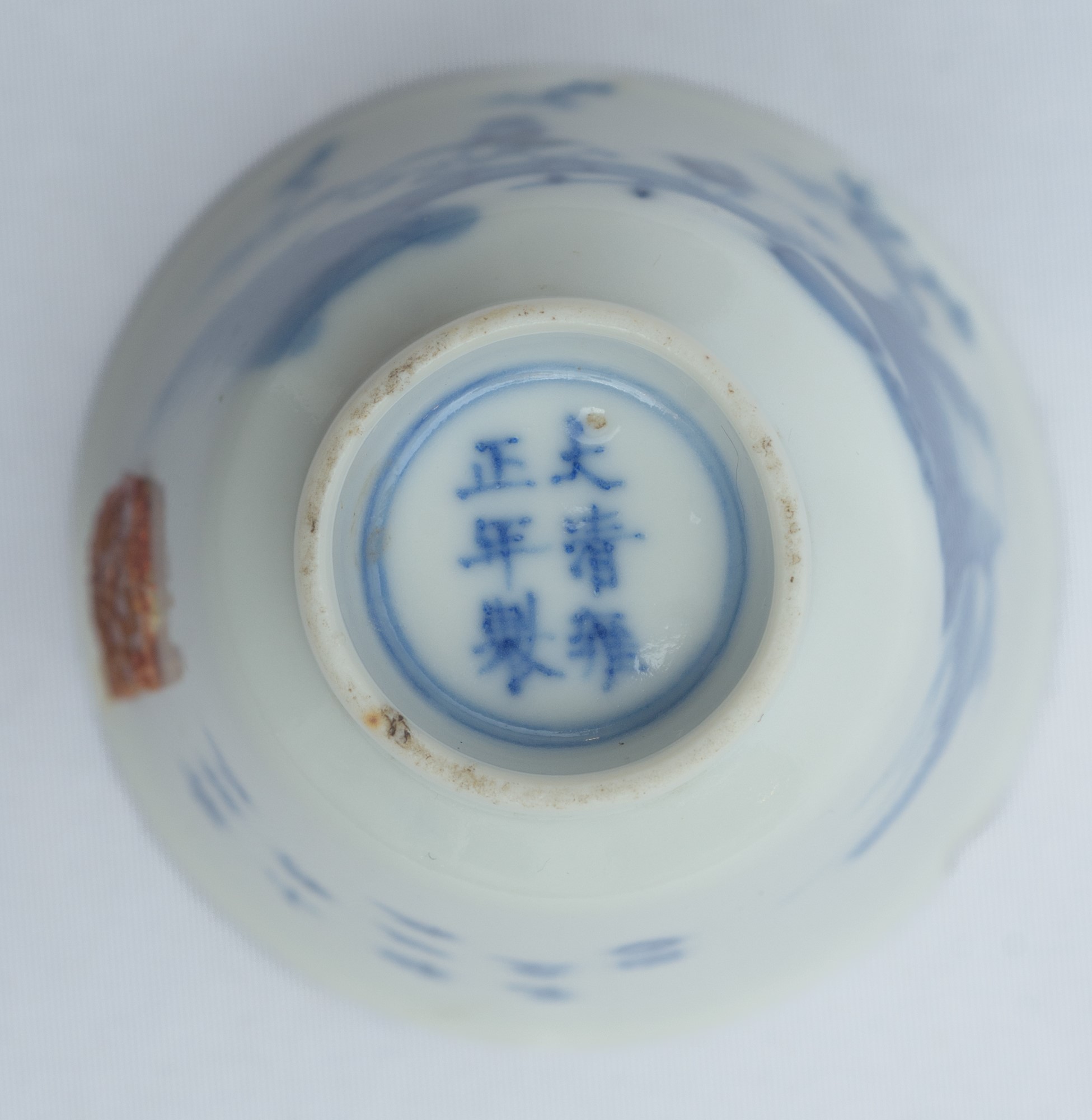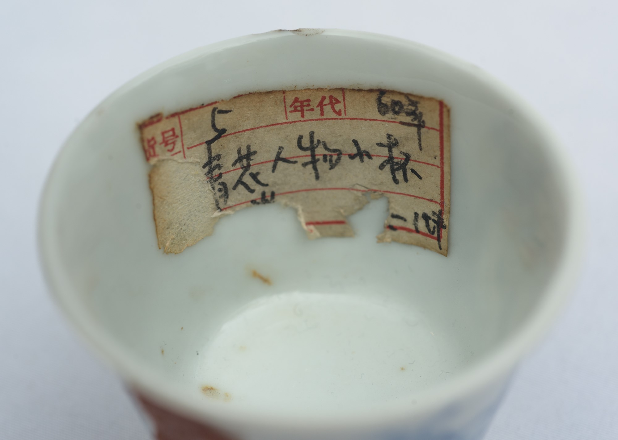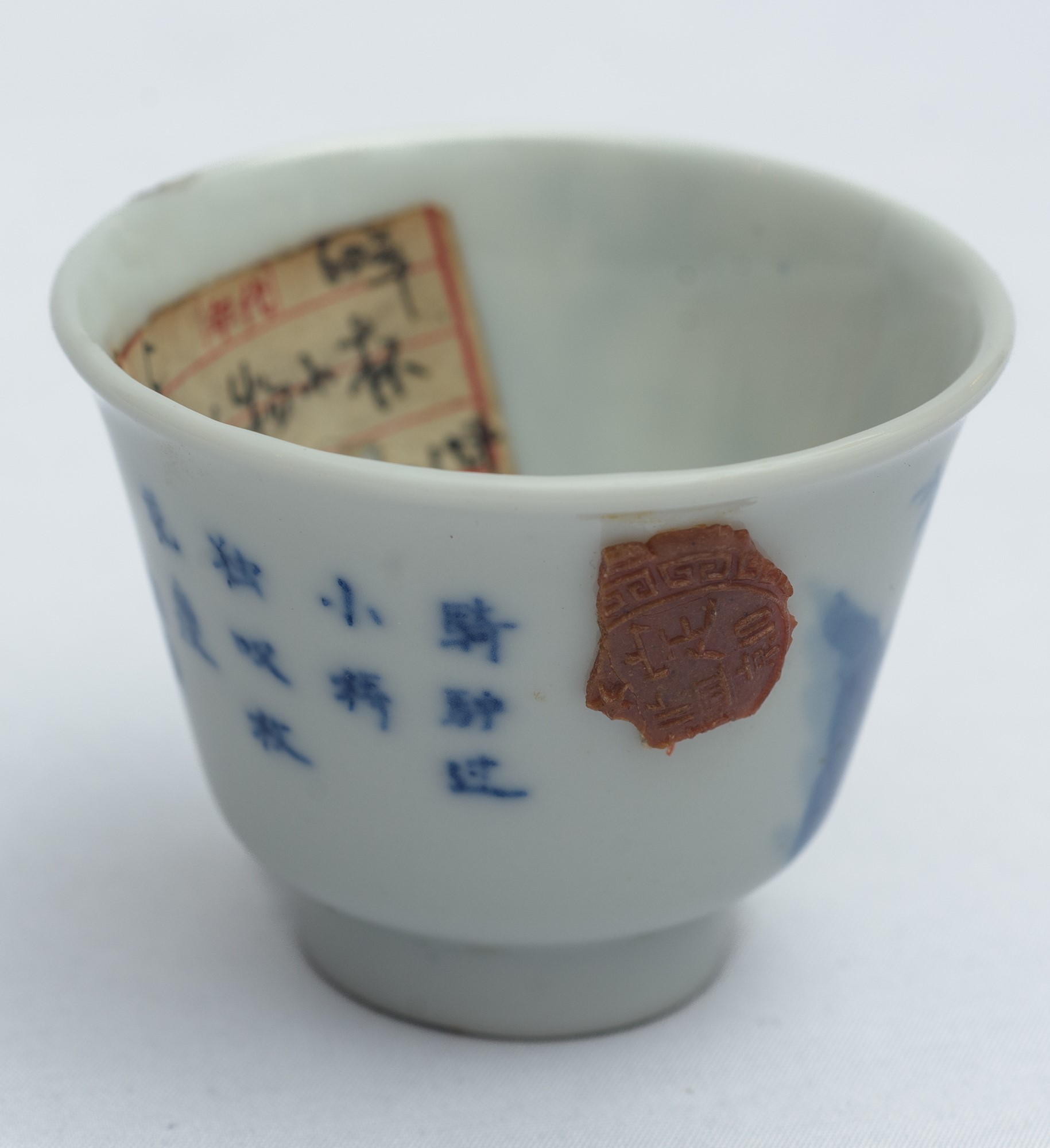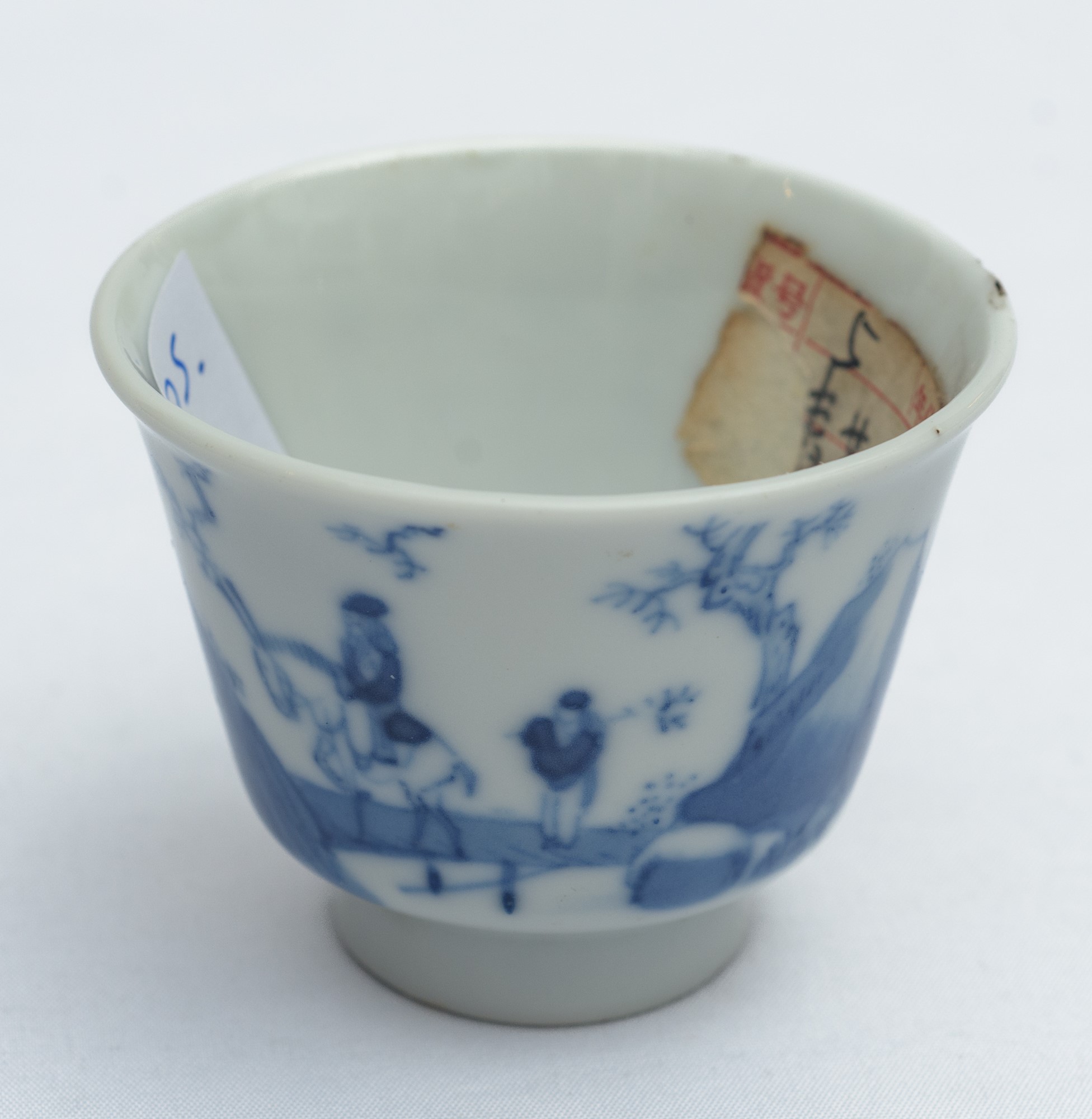 Piccola tazza prima metà de XX secolo porcella blu e bianca 4 x 5 cm