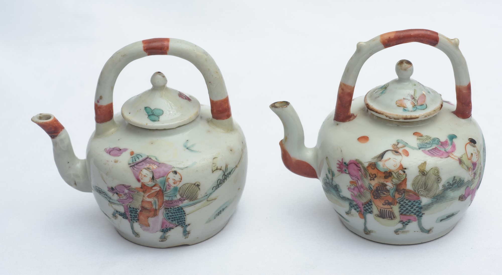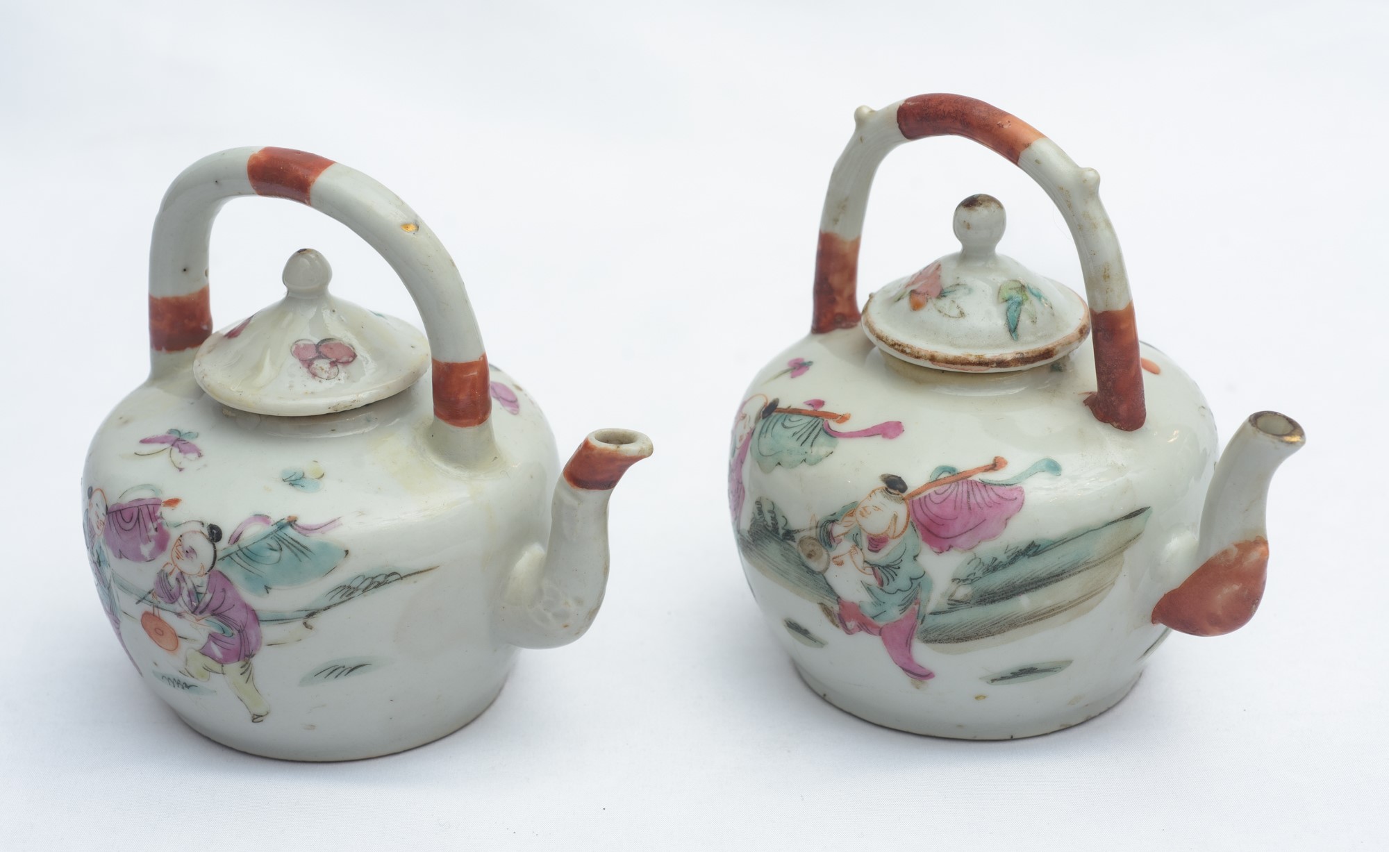 Coppia di teiere XIX - XX secolo porcellana policroma 11 x 11 cm