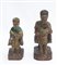 Coppia di sculture taoiste XIX secolo legni policromi 18 x 8 x 6,5 cm; 14 x 5 x 7 cm