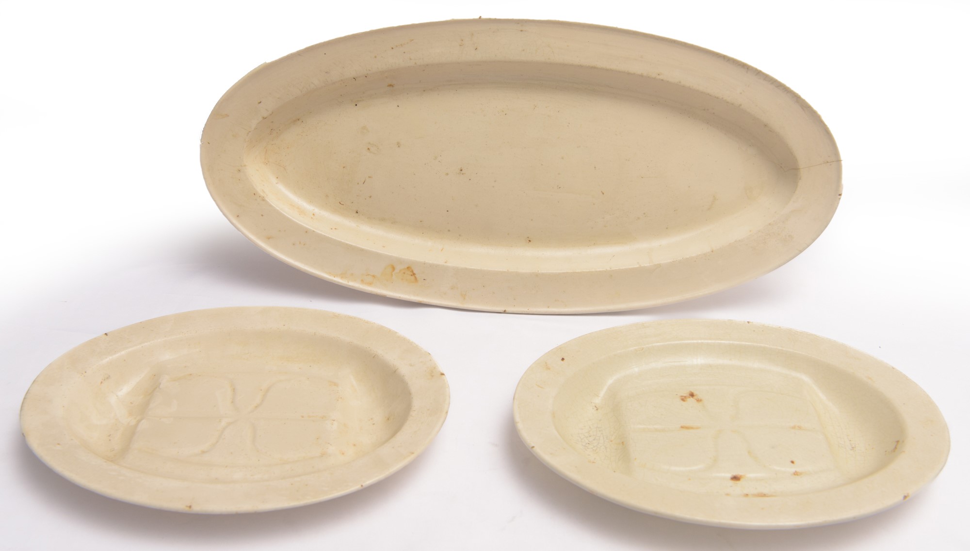 Tre vassoi ovali da portata - Manifattura Colonnese Anni '40 del XIX secolo ceramica smaltata bianca