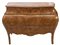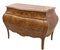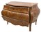 di forma bombata, a due cassetti e mezzo cassetto senza traversa, in legno e radica di noce. Restauri e mancanze.