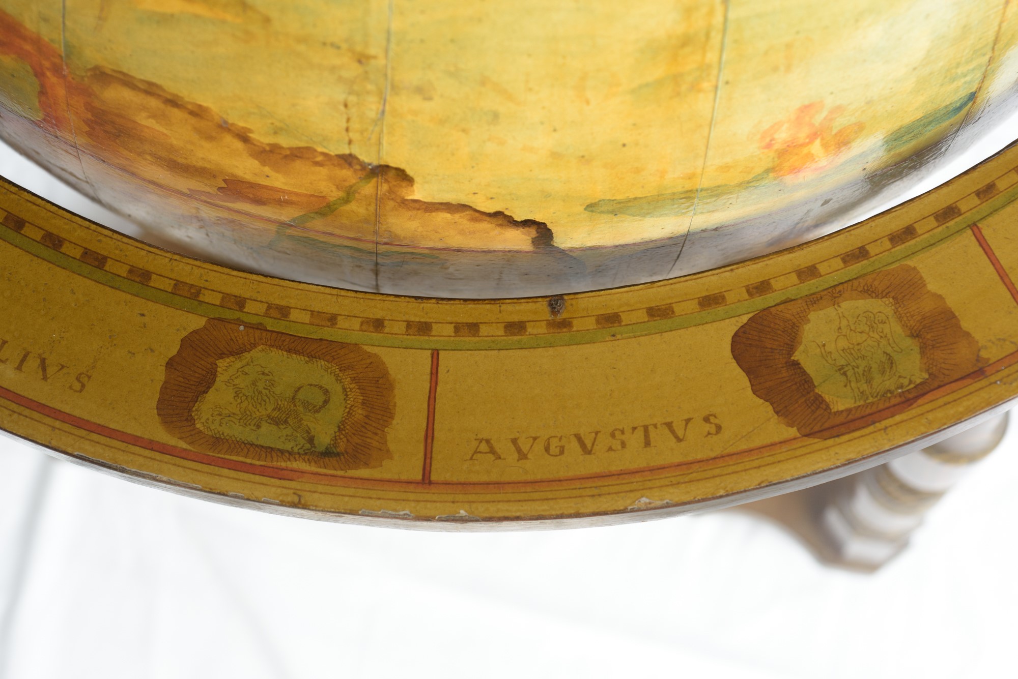 dipinto su carta, con basamento in legno di noce