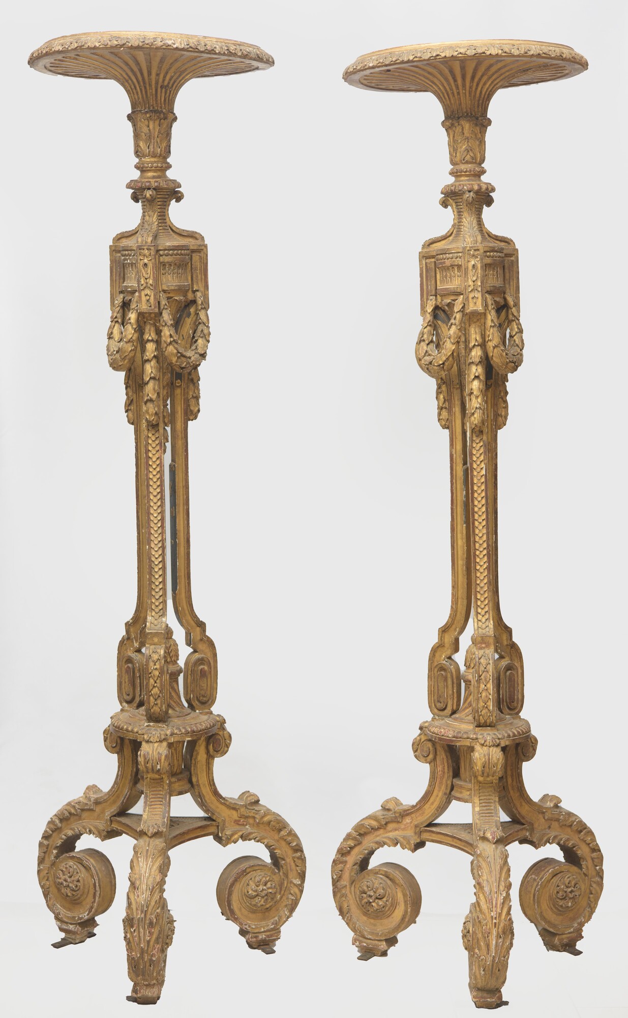Coppia di importanti gueridons Manifattura francese, fine XVIII secolo legno dorato 161 x 50 cm