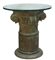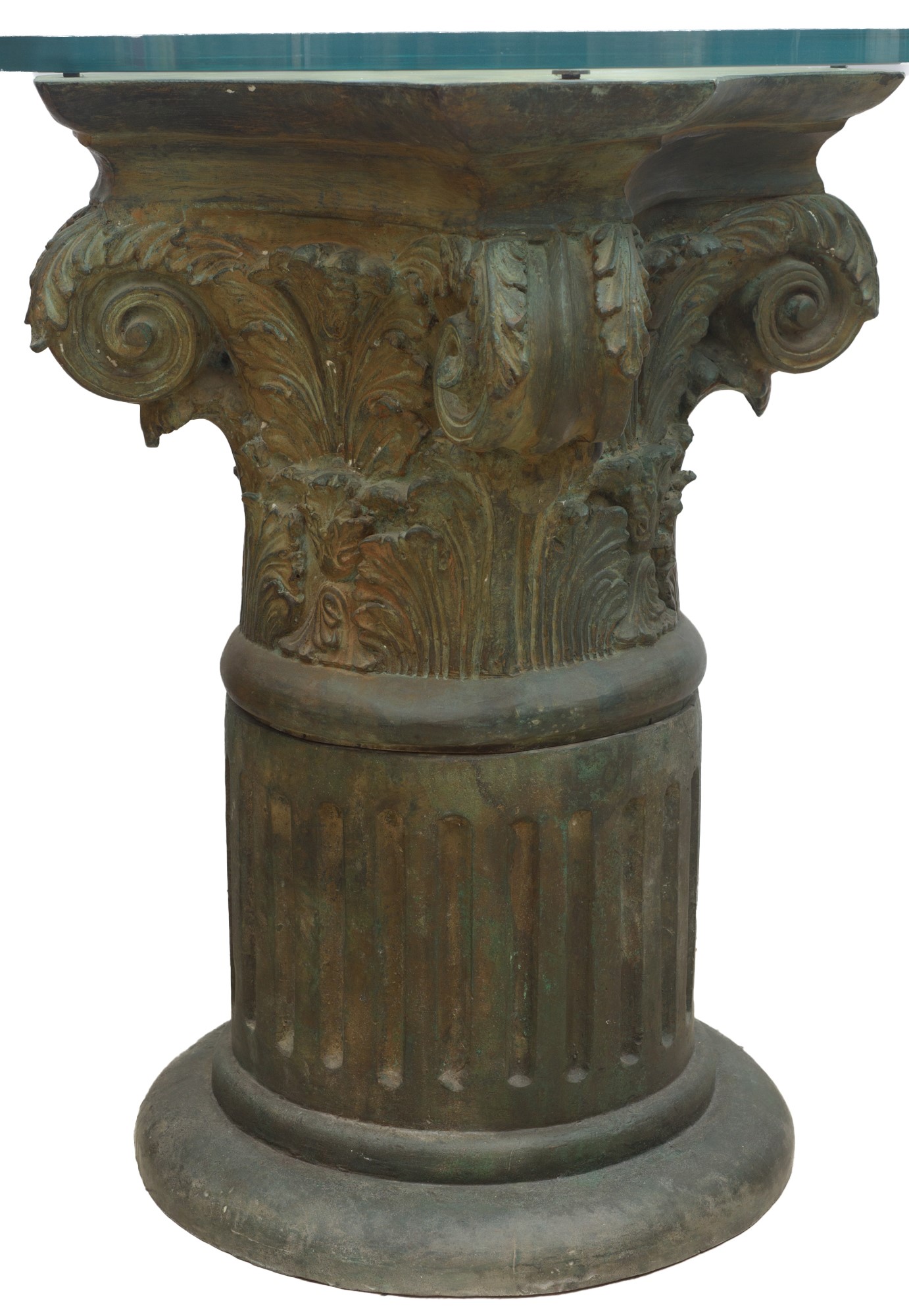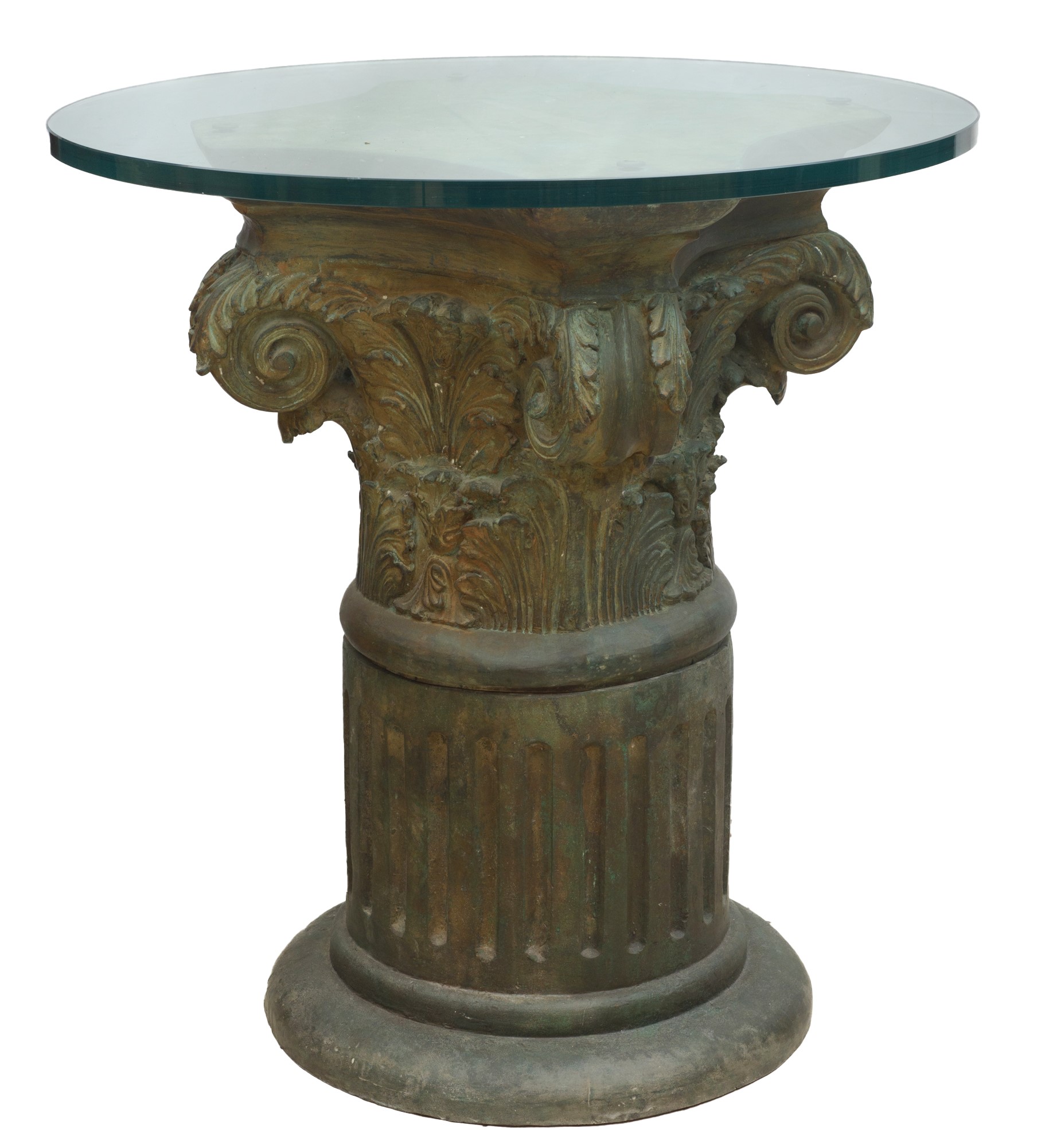 scanalata, con capitello in bronzo a patina verde con piano in cristallo molato.