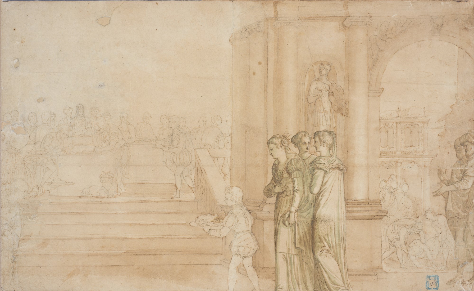 Federico Zuccari (ambito di) (1539 - 1609) Salomè con la testa del Battista inchiostro su carta 29,5 x 47,5 cm