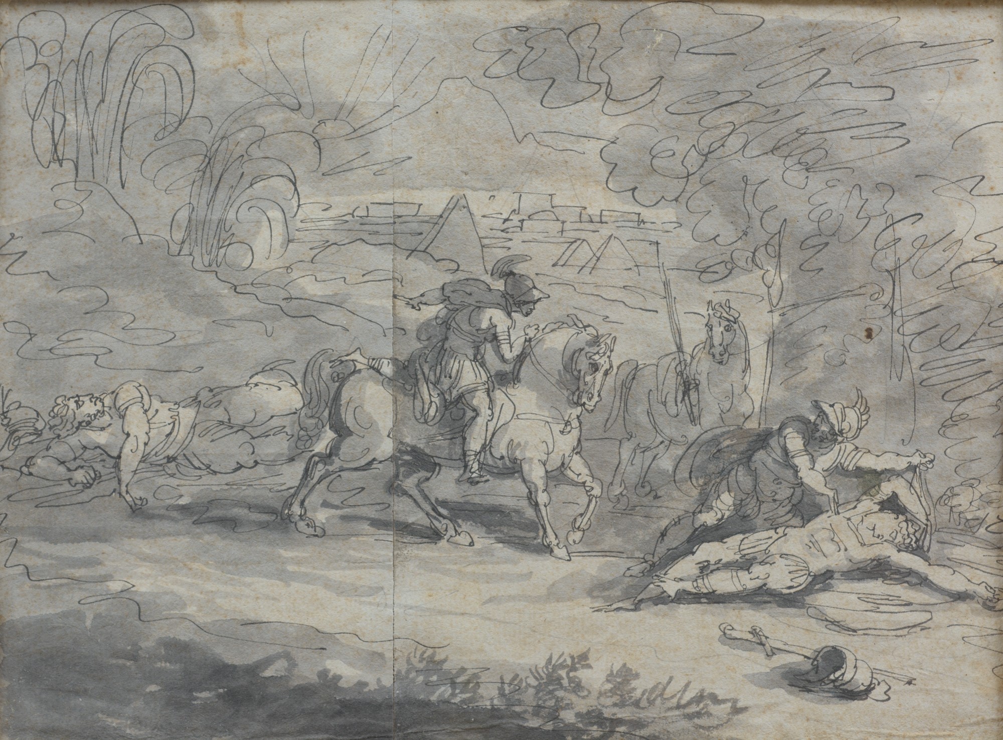Scuola italiana del XVIII secolo - Bozzetto preparatorio fine del XVIII scolo china e acquarello su carta 17 x 23,5 cm