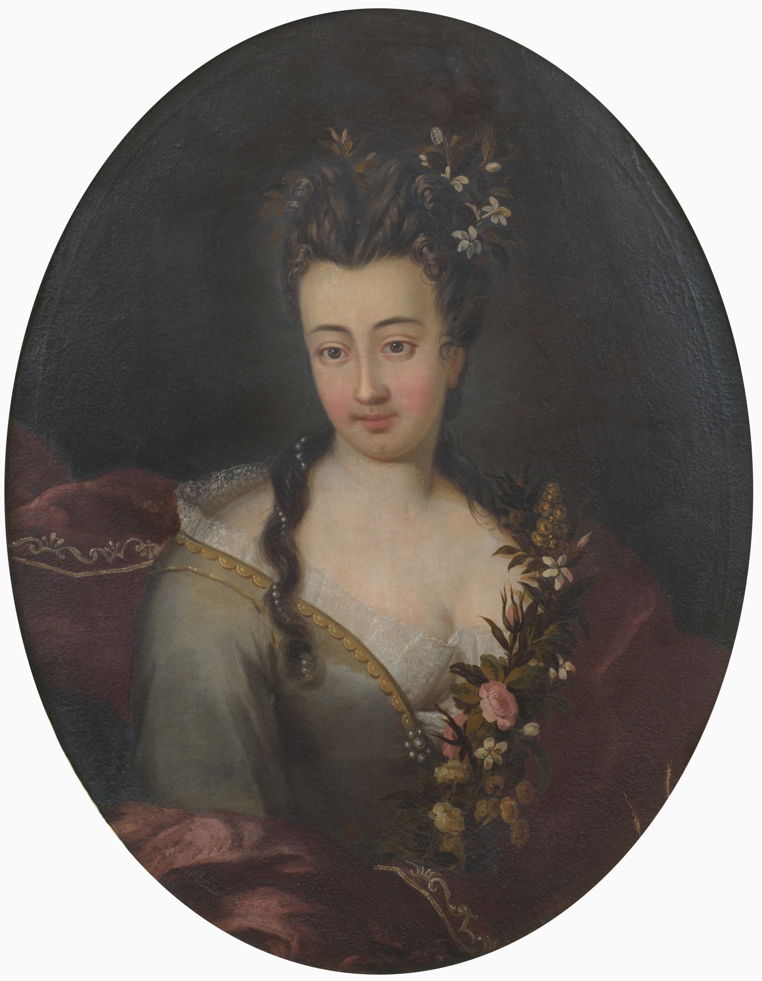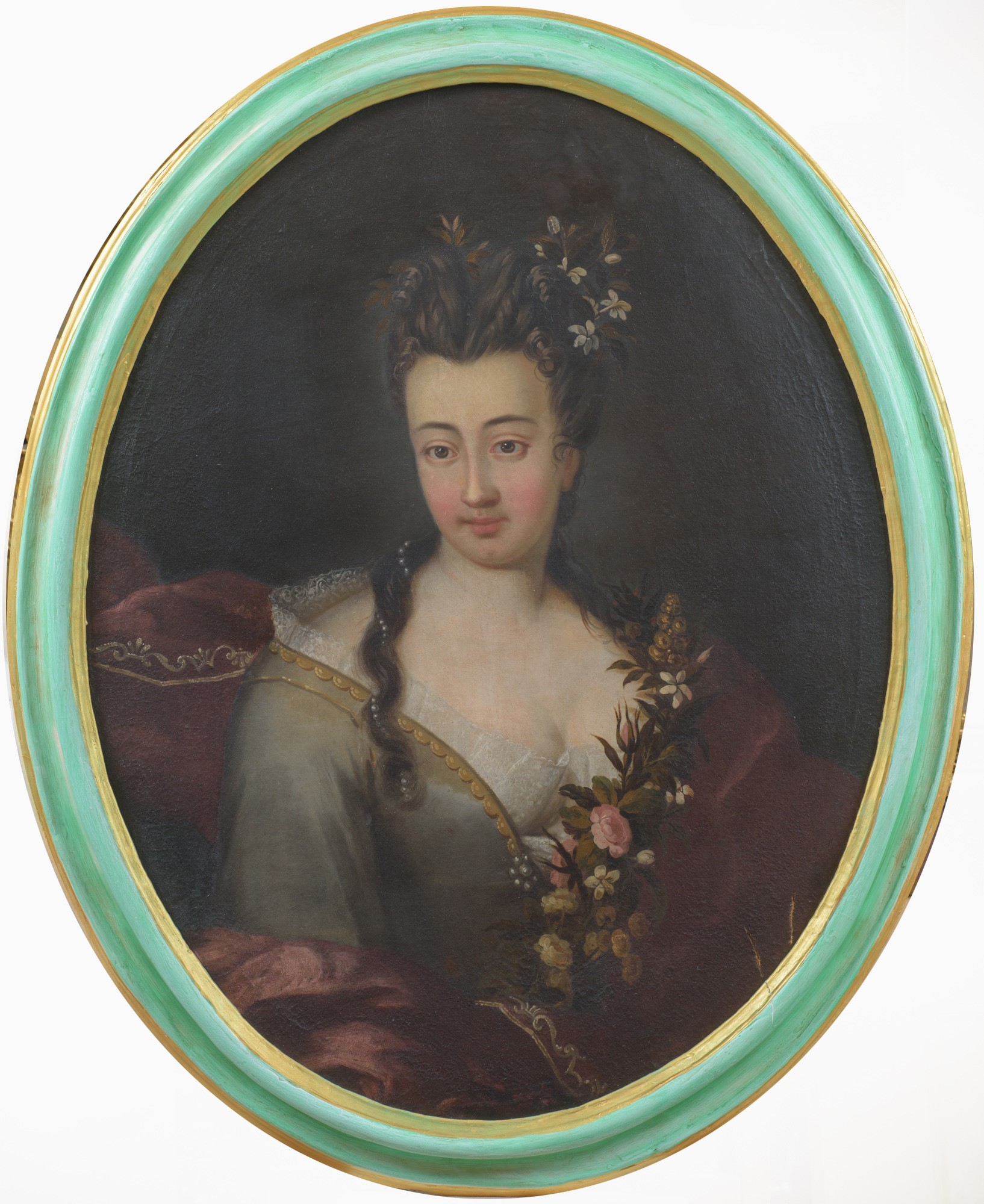 Scuola del Nord Italia del XVIII secolo - Ritratto di dama con fiori seconda metà del XVIII secolo Olio su tela 95 x 74 cm