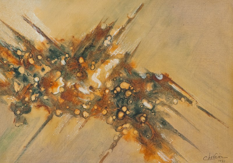 Ferdinando Chevrier (Livorno 1920 - 2005) SENZA TITOLO, 1957 Tecnica mista su carta, cm. 34x48 Firma e data in basso a destra.