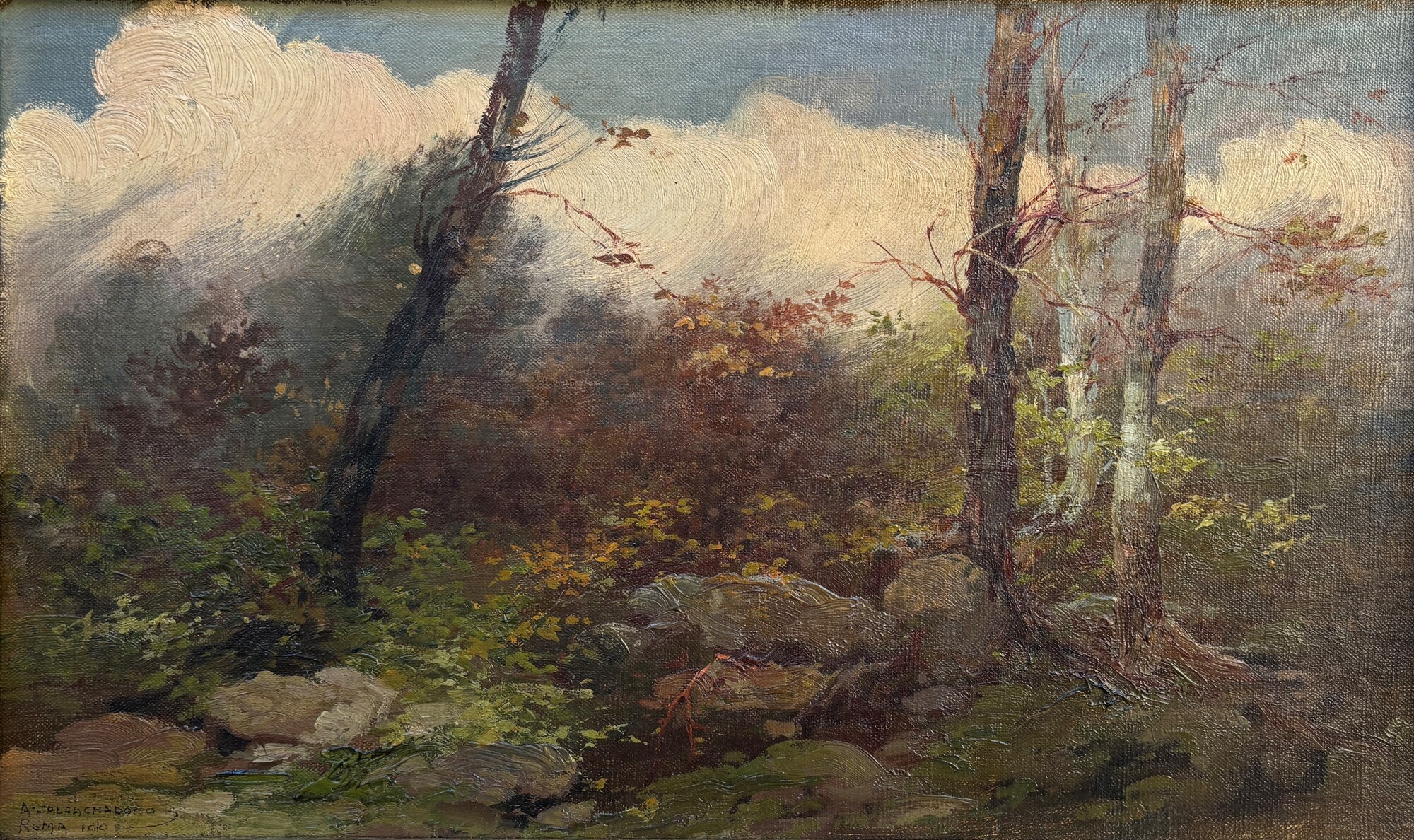 Firmato, datato e situato in basso a sinistra: "A. Calcagnadoro Roma 1910". In cornice.