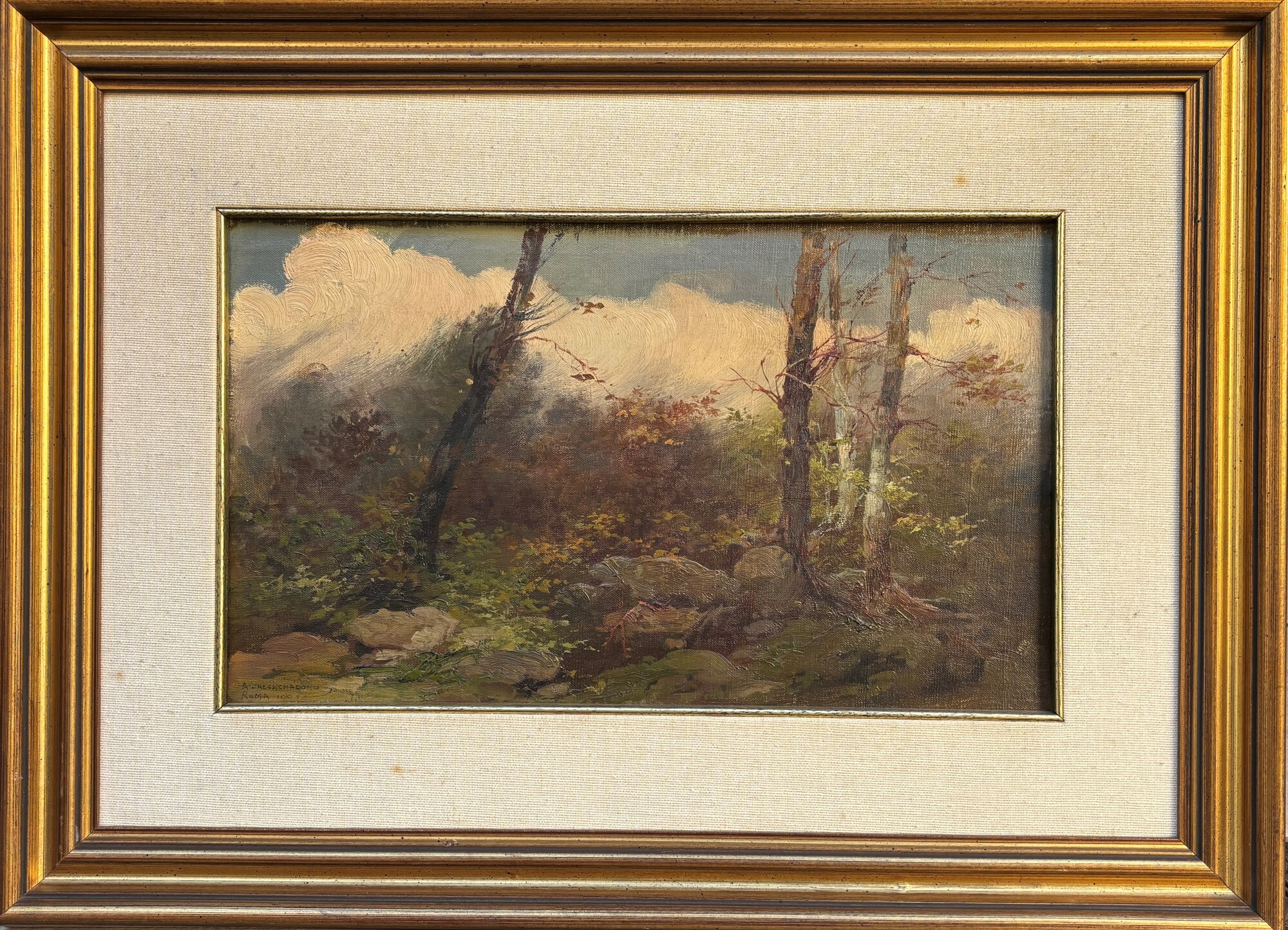 Antonio Calcagnadoro (1876 - 1935) Paesaggio autunnale 1910 olio su tela 22 x 37 cm
