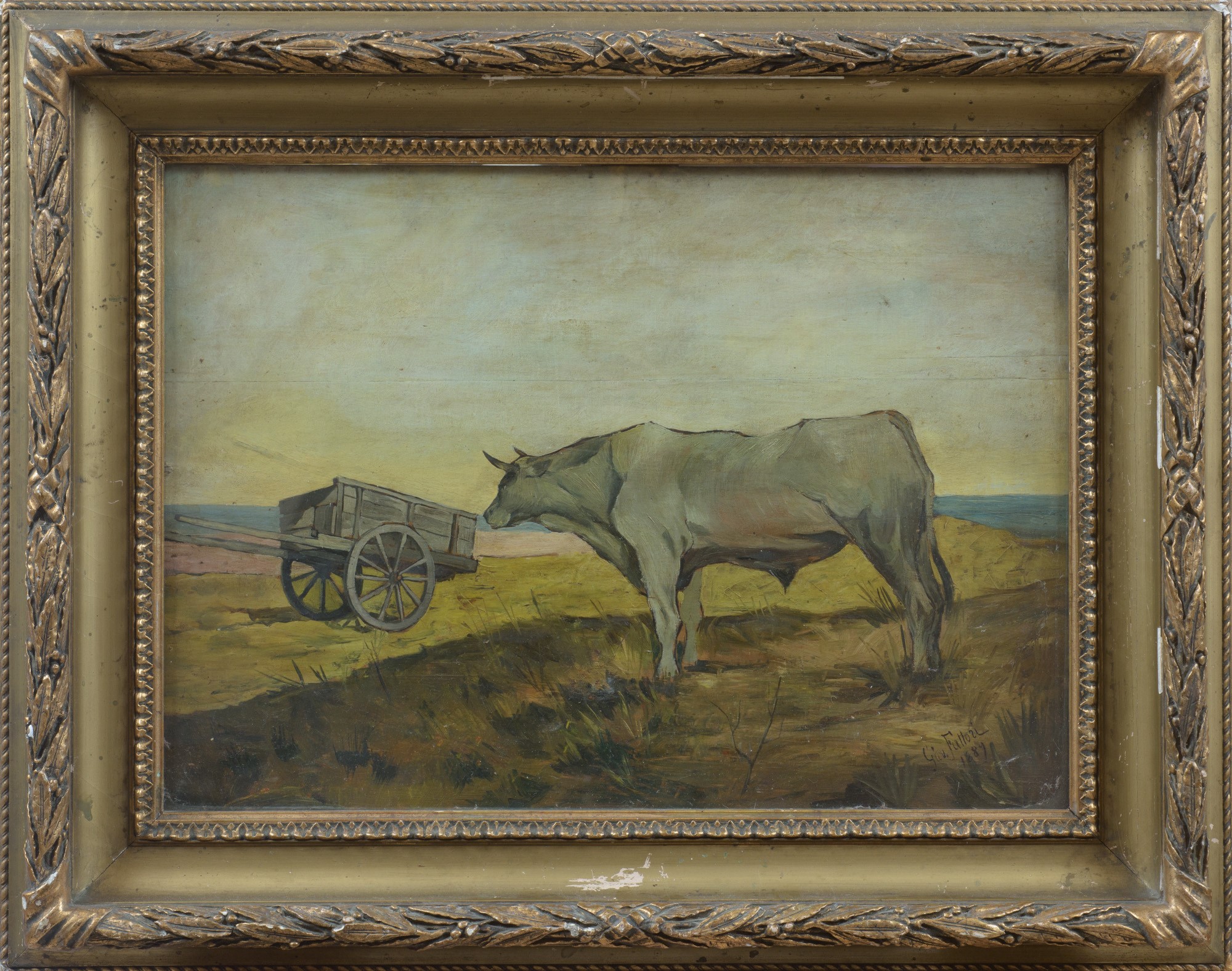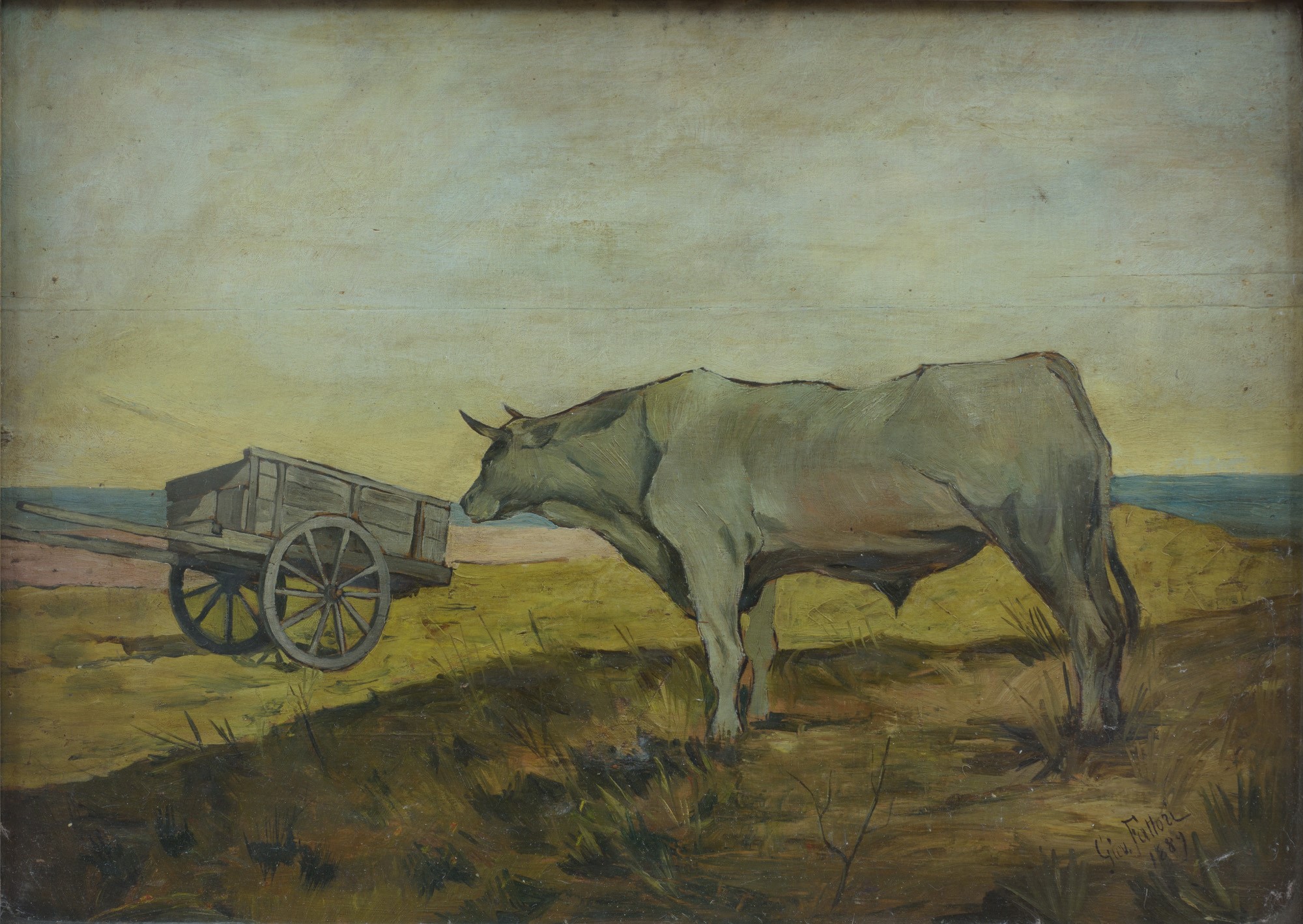 Giovanni Fattori (firma_di) (1825 - 1908) Bue con carro 1889 olio su tavoletta 34 x 50 m