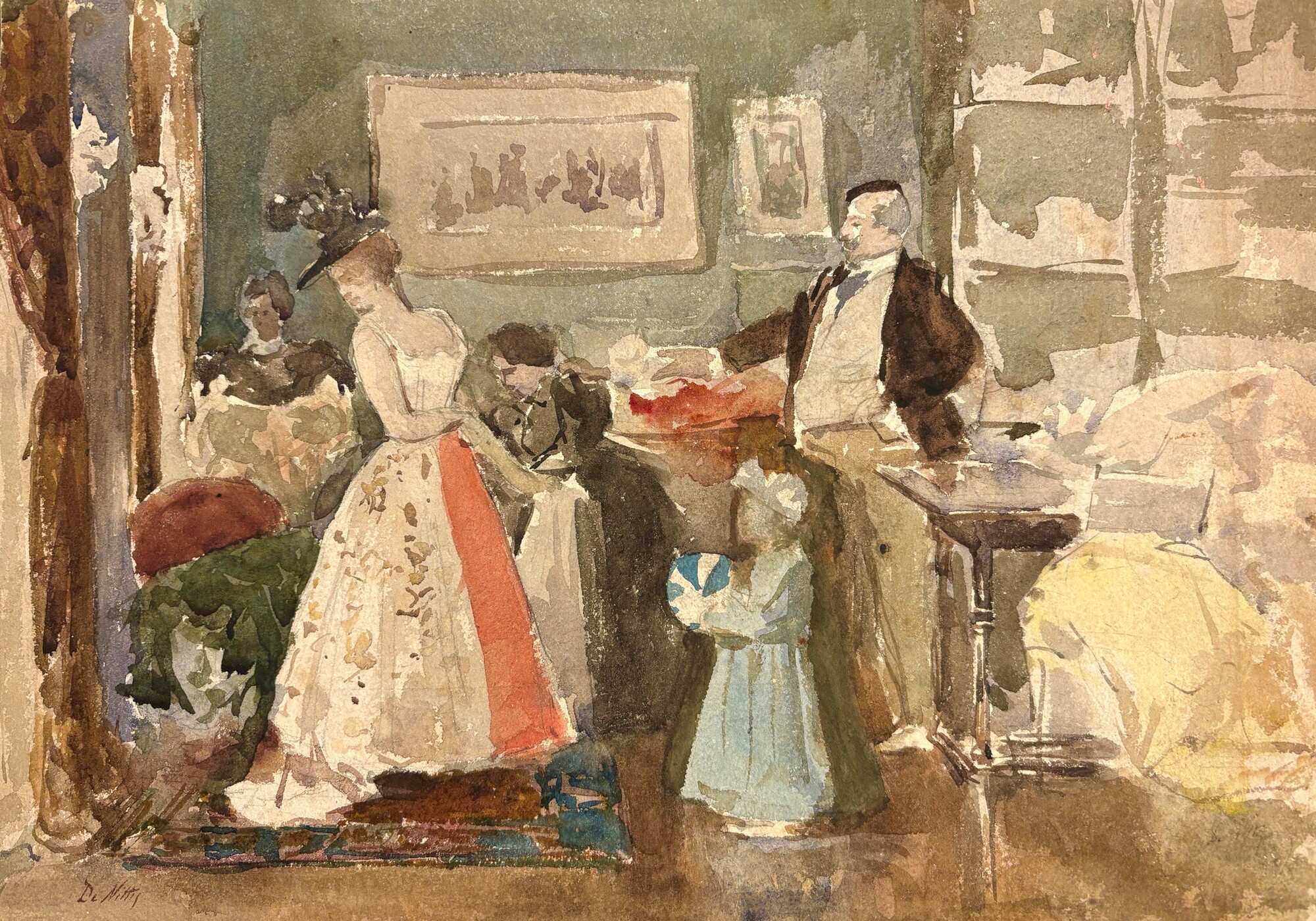 Giuseppe De Nittis (firma_di) (1846 - 1884) Scena d'interno Acquerello su carta 23,5 x 32 cm