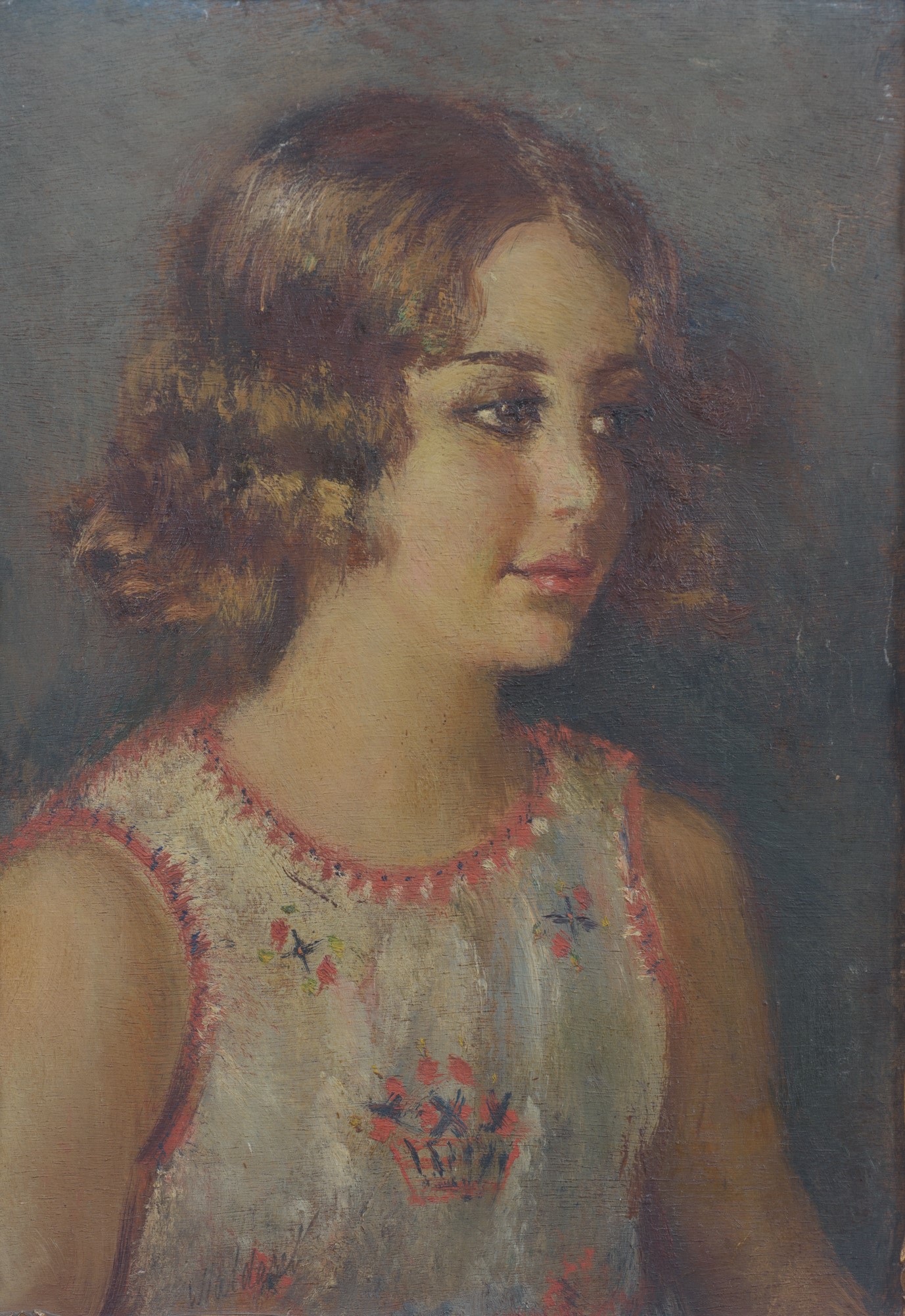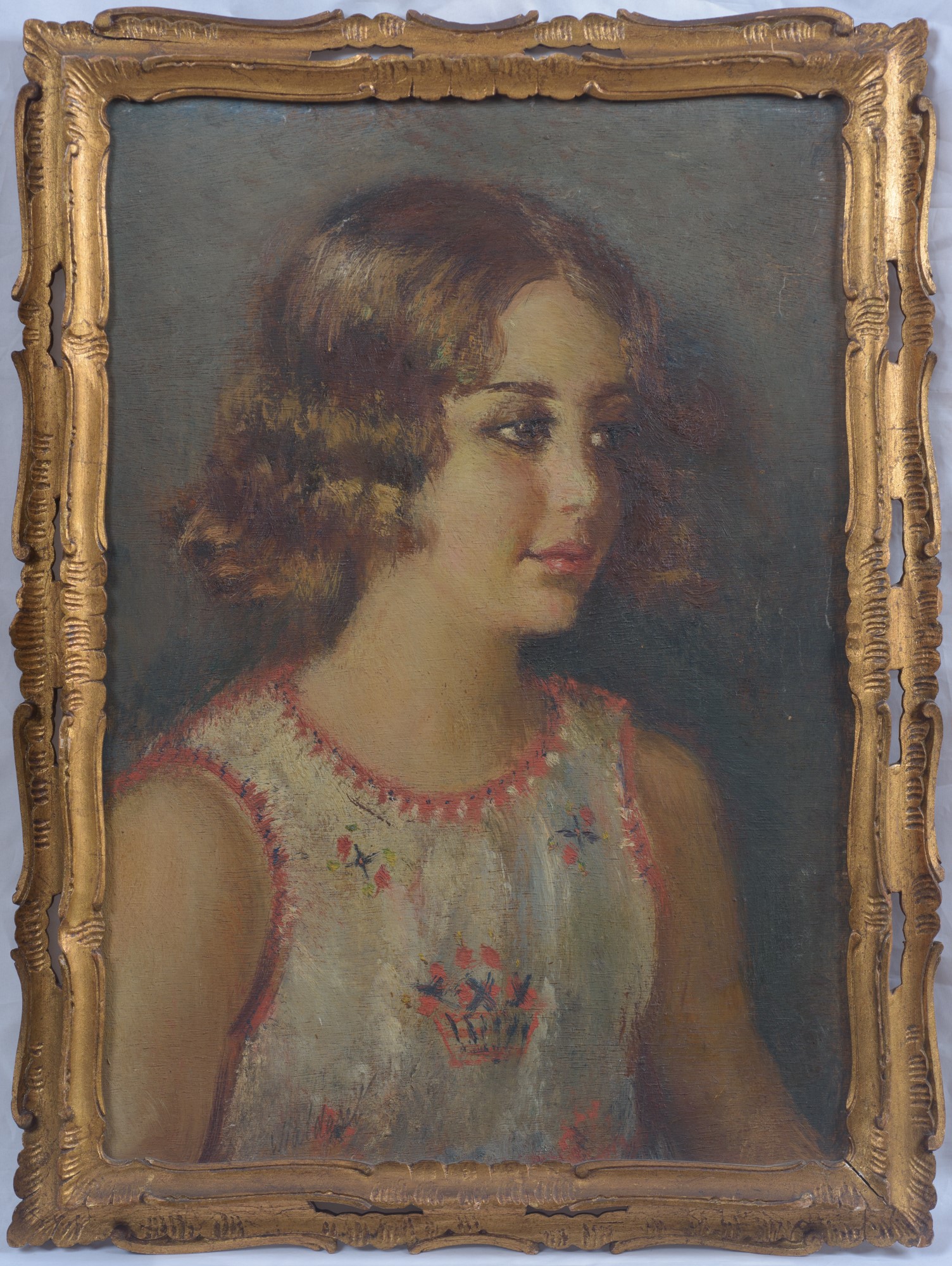 Giuseppe Maldarelli (1885 - 1958) Ritratto di fanciulla olio su tavoletta 49 x 35 cm
