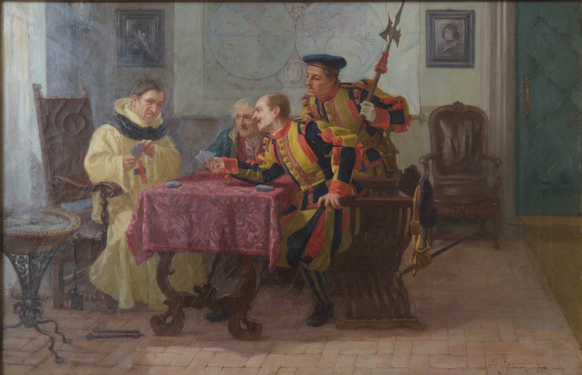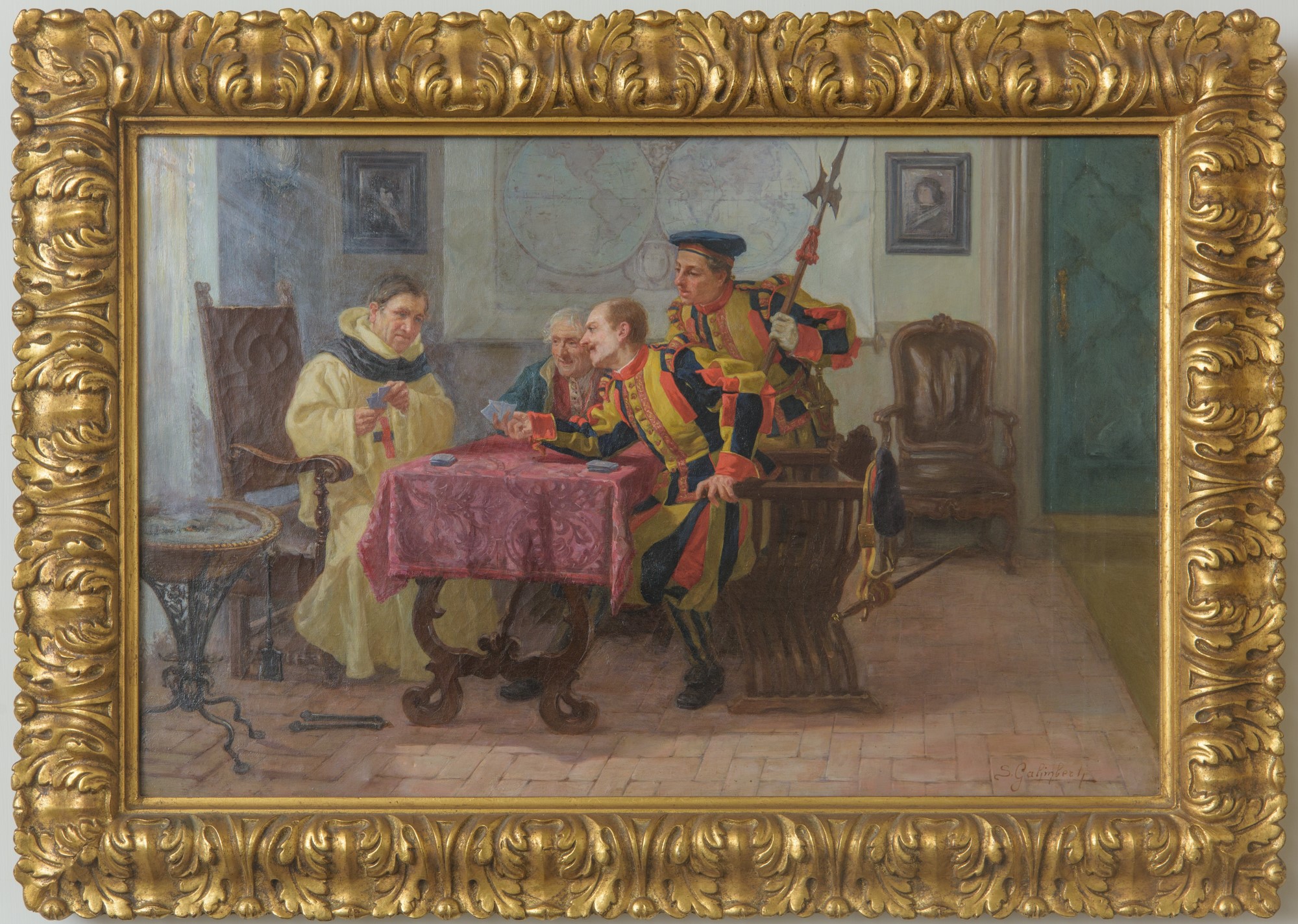 Scena di interno con giocatori di carte XIX secolo olio su tela 60 x 40 cm