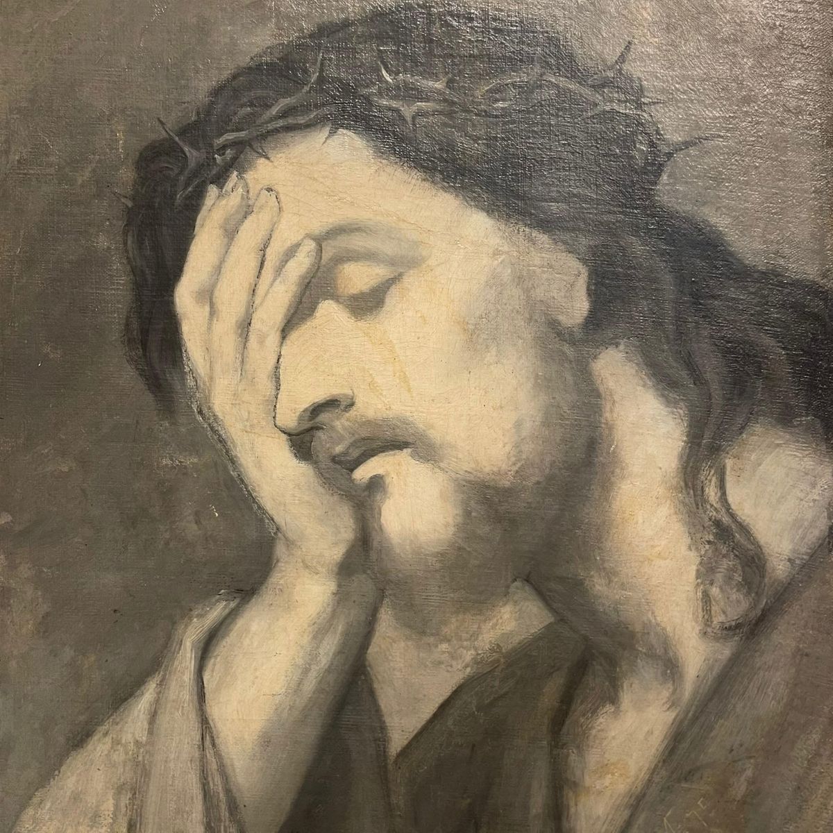 Anselm Feuerbach (1829 - 1880) Uomo dei dolori 1875 olio su tela 46 x 37 cm