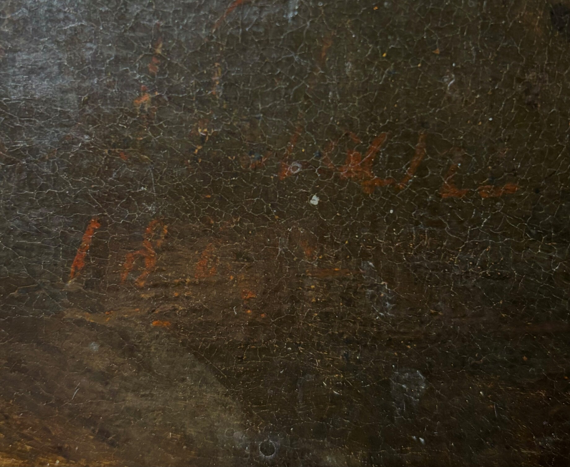 Questo periodo è definito da elaborati giochi di luce, un sapiente uso del colore sui toni caldi e la capacità di cogliere il lato poetico dell'episodio che riesce a conferire ai paesaggi un gran vigore. Firmato e datato indistintamente in basso a sinistra. In cornice.