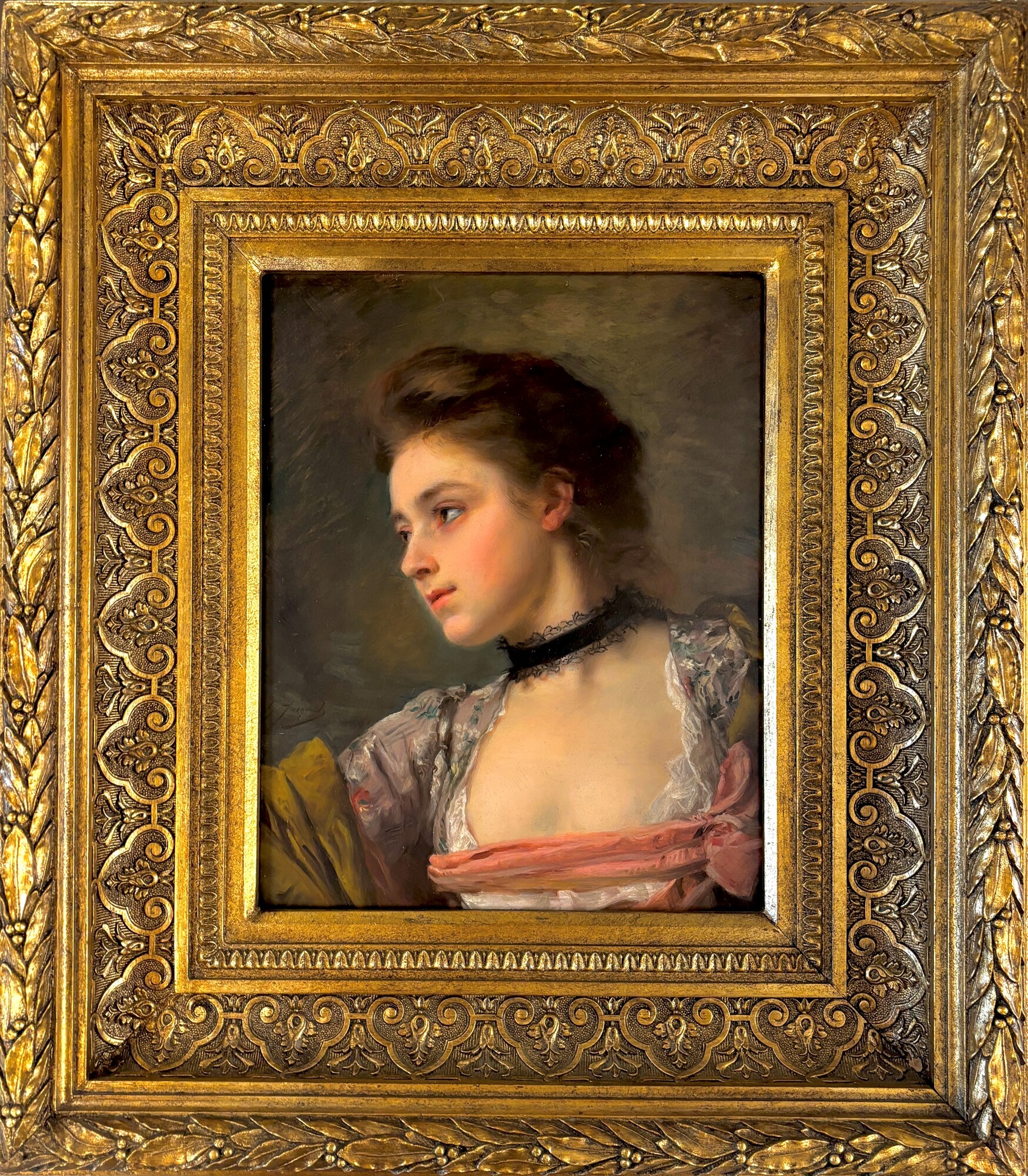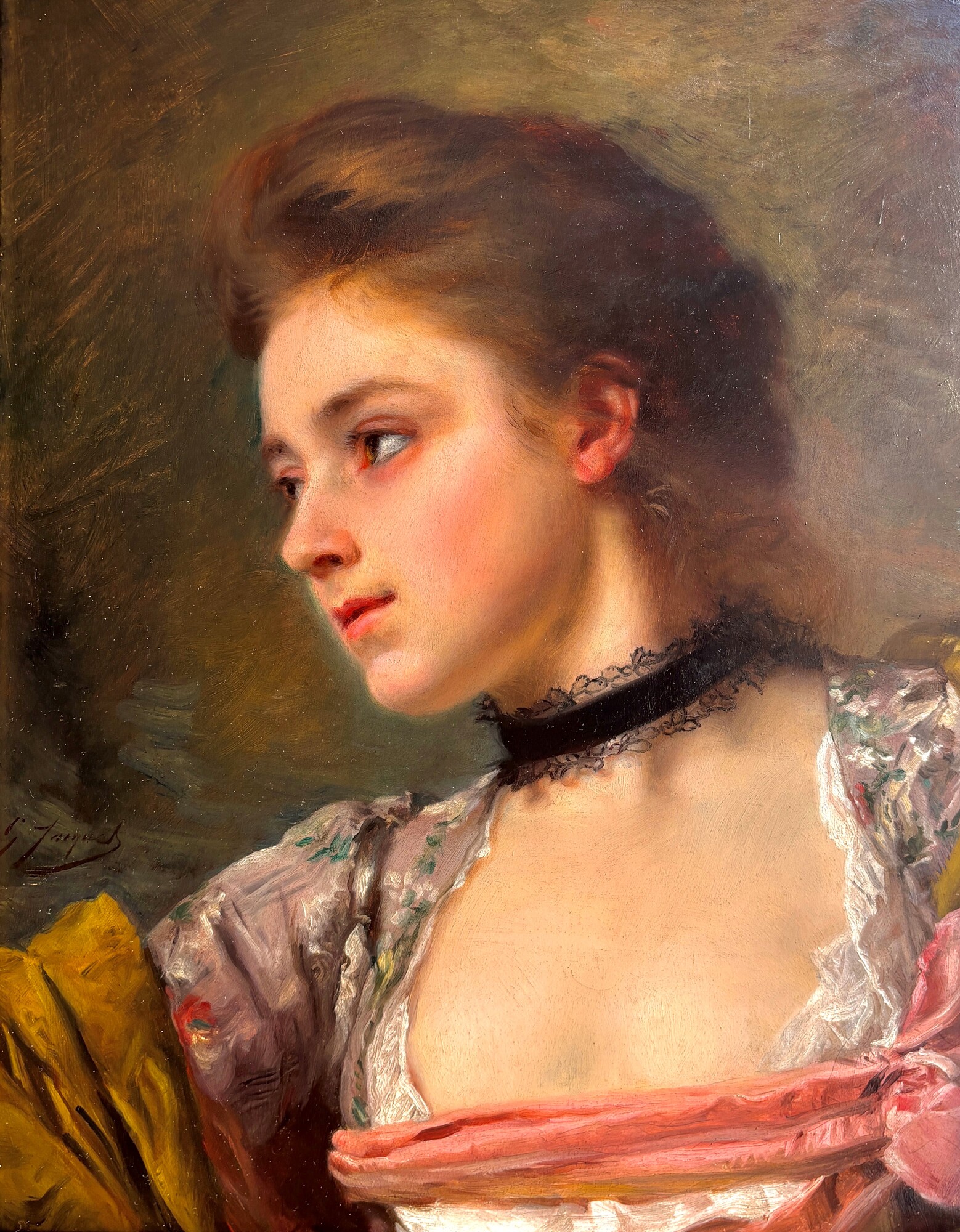Gustav Jean Jacquet (1846 - 1909) Ritratto di giovane donna olio su tavoletta 31 x 24 cm