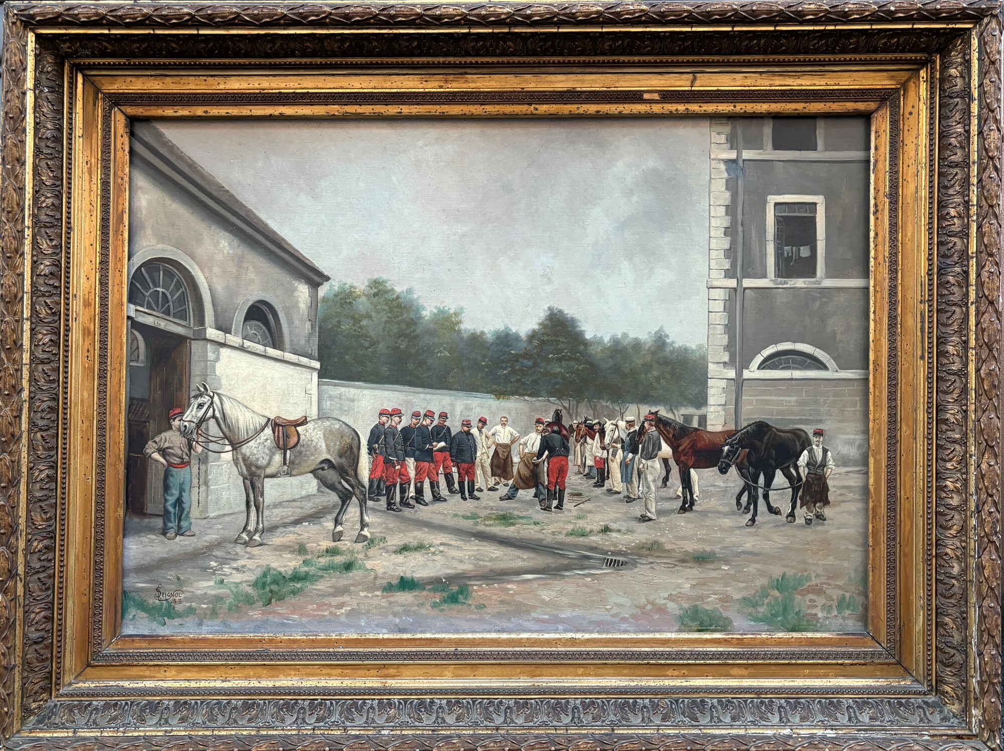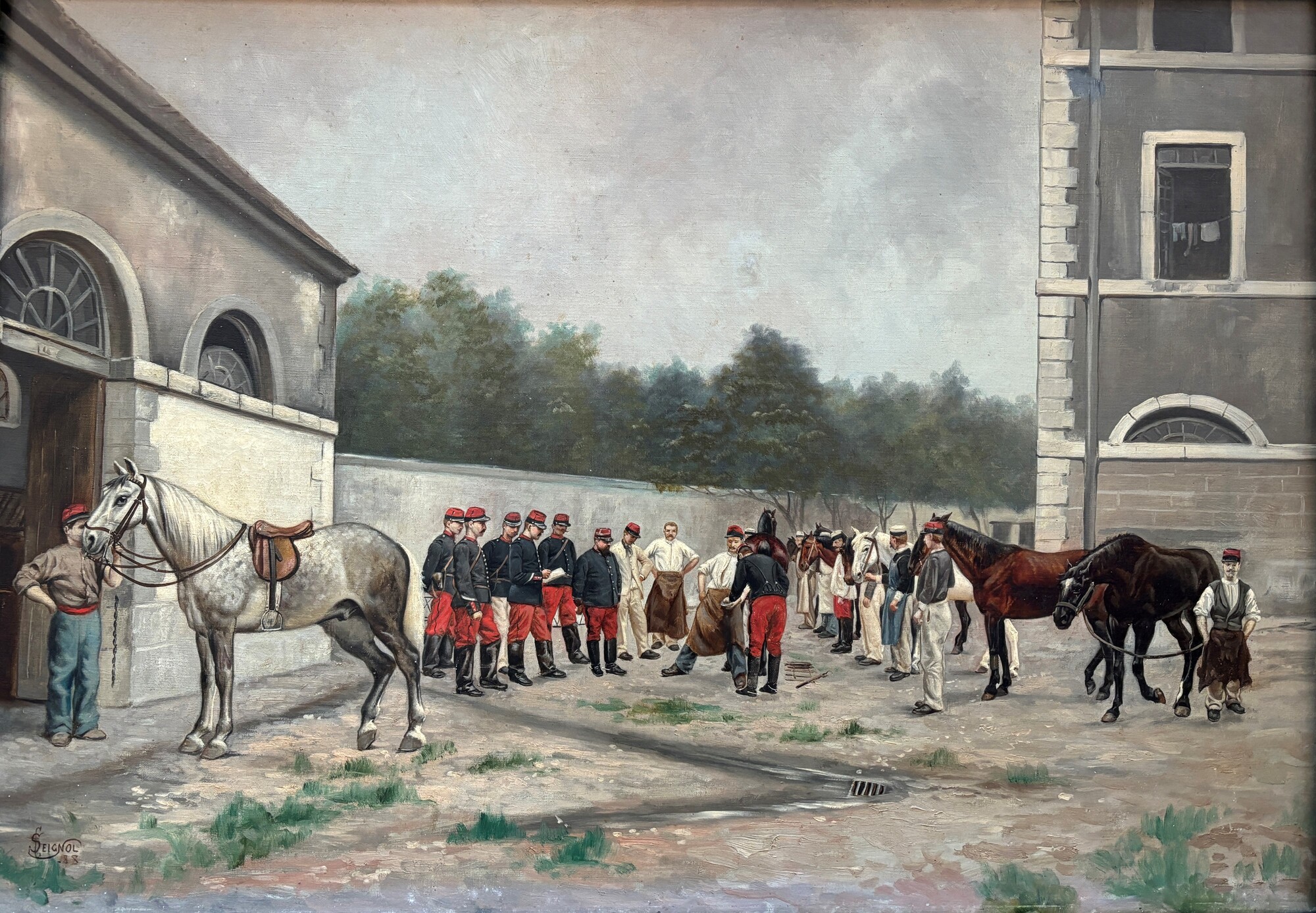 Claudius Seignol (1858 - 1926) Scena di scuderia 1888 olio su tela 64 x 93 cm