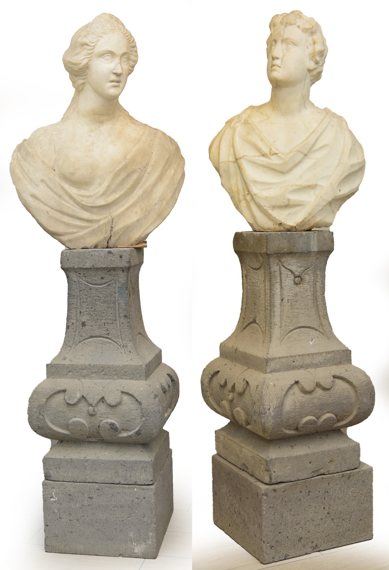 Coppia di busti Manifattura italiana, seconda metà XVII sec. Busti -77 x 62 x 30 cm Basamenti 105 x 54 x 54 cm