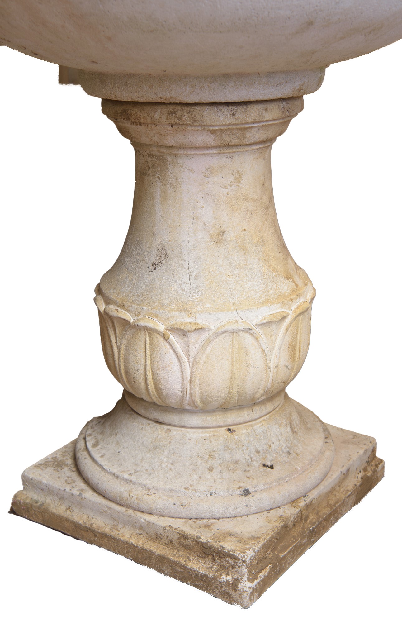 di forma circolare, con base a balaustro scanalata, decori a palmette sulla base. Difetti