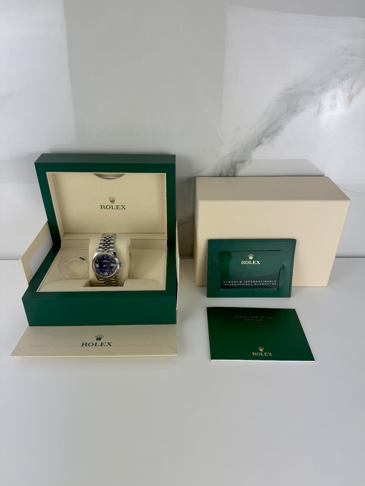 Marca Rolex Modello (Orologio) Datejust 36 Numero di referenza 126234 Carica Automatico Materiale della cassa Acciaio Materiale cinturino Acciaio Anno di produzione 2024 Condizione nuovo Corredo Con scatola originale e documenti originali Calibro Carica Automatico Cassa Materiale della cassa Acciaio Diametro 36 mm Impermeabile 10 ATM Materiale lunetta Oro bianco Vetro Vetro zaffiro Cinturino Materiale cinturino Acciaio Colore cinturino Acciaio Chiusura Déployante Materiale chiusura Acciaio Funzioni Data