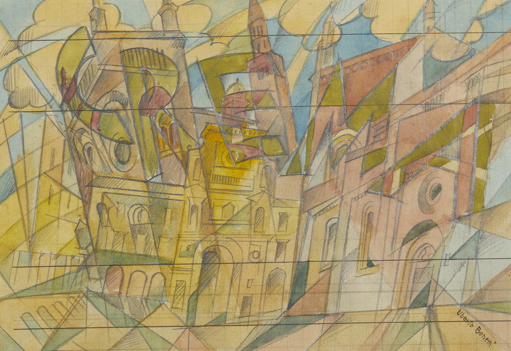 BONETTI UBERTO (1909 - 1993) CREMA. tecnica mista su carta. Cm 32,50 x 23,00. firma